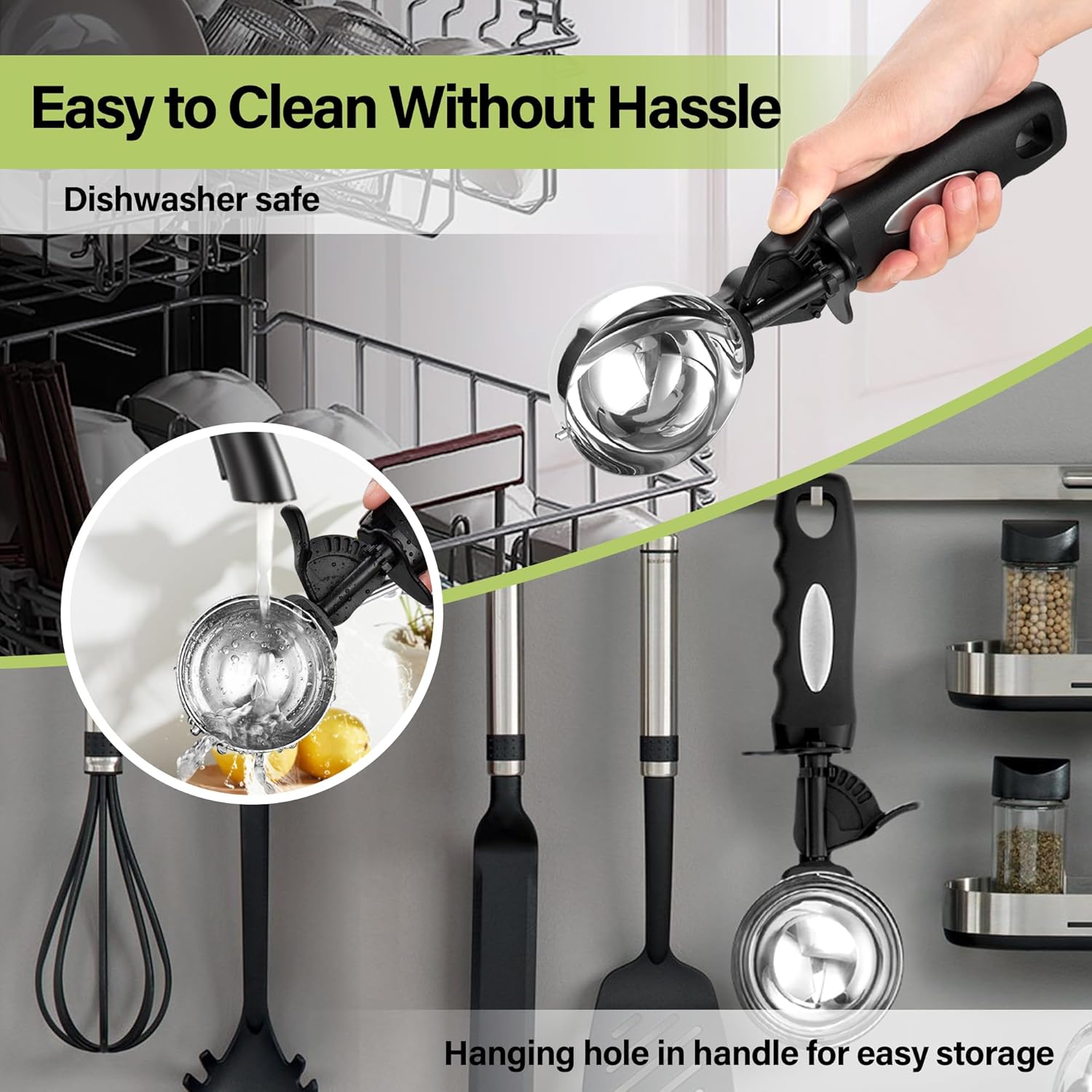 - Practical Kitchen Gadget- This ice cream scoop can meet your daily use needs, whether cooking or baking can help you to finish the task excellently. Dividing cookie dough, cupcakes, making fruit balls, meatballs, ice cream and more. In addition to use in the home kitchen, it can also be used in restaurants, pastry stores, ice cream parlors.