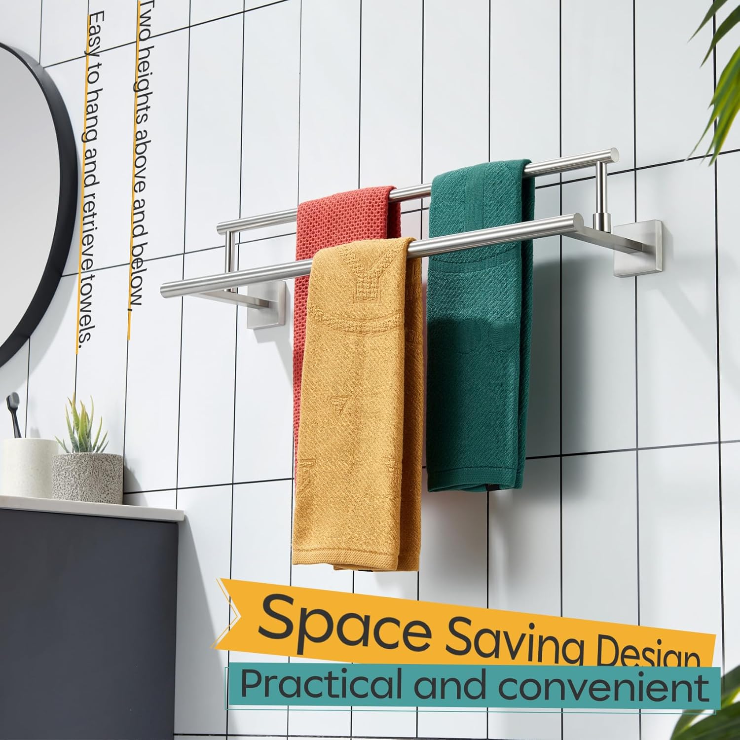 - ◄ PREMIUM MATERIAL ► KOKOSIRI Double Towel Bars made of SUS304 Stainless Steel and features an all-metal design using high-grade steel to resist rust and corrosion from daily use. For your health, all the materials we use are the highest quality and harmless. You can rest assured to use all of our products
