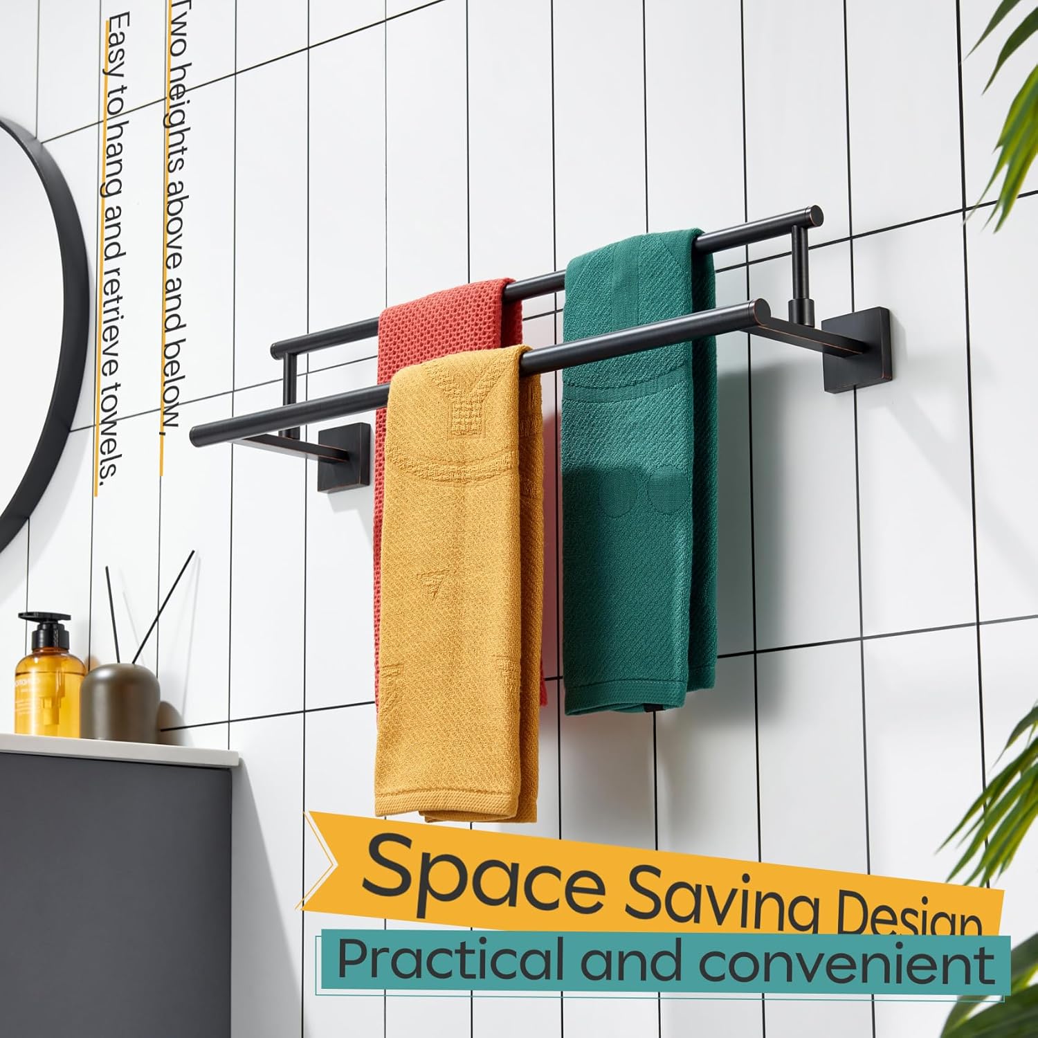 KOKOSIRI Towel Bars 24-Inch Bathroom Towel Holder Oil Rubbed Bronze Bath Towel Rails Racks Wall Mounted Stainless Steel B5009ORB-L24