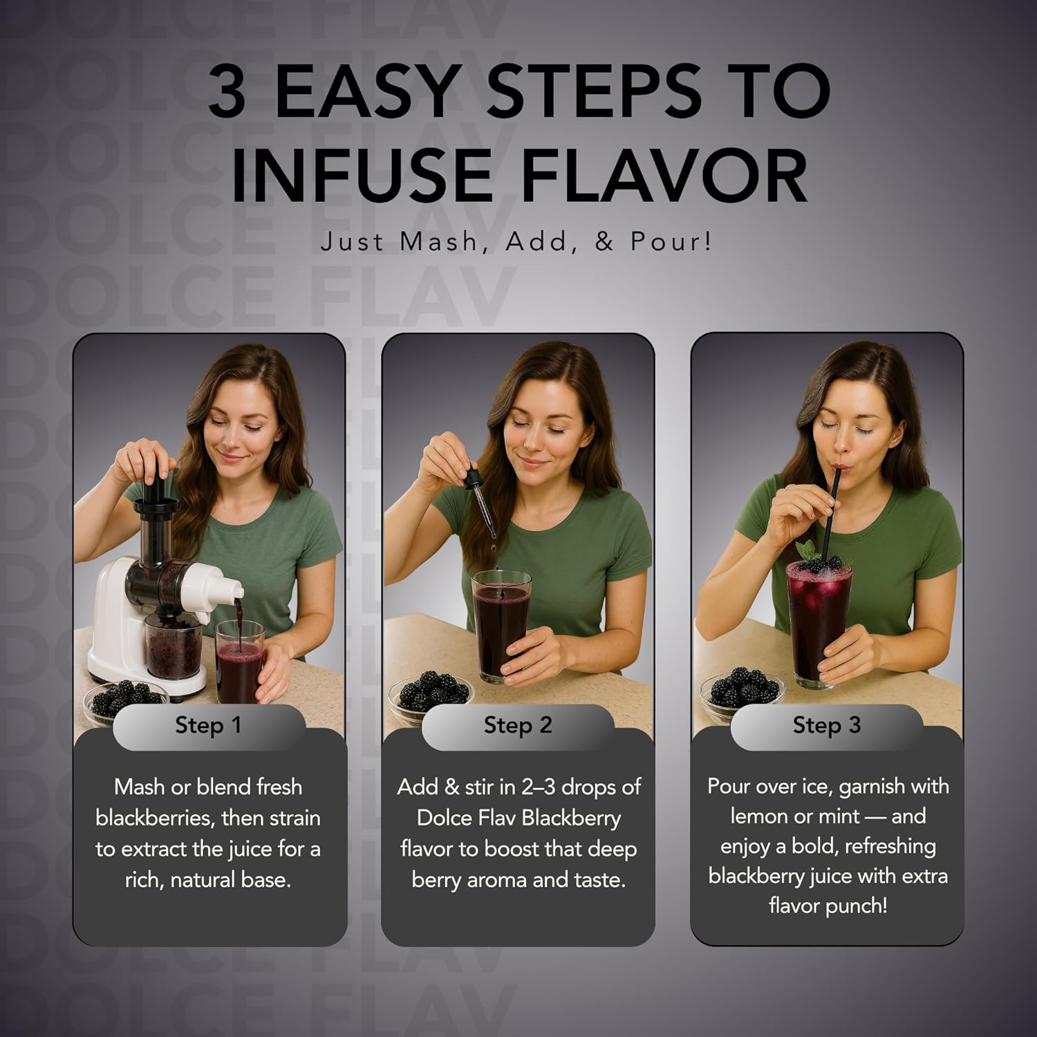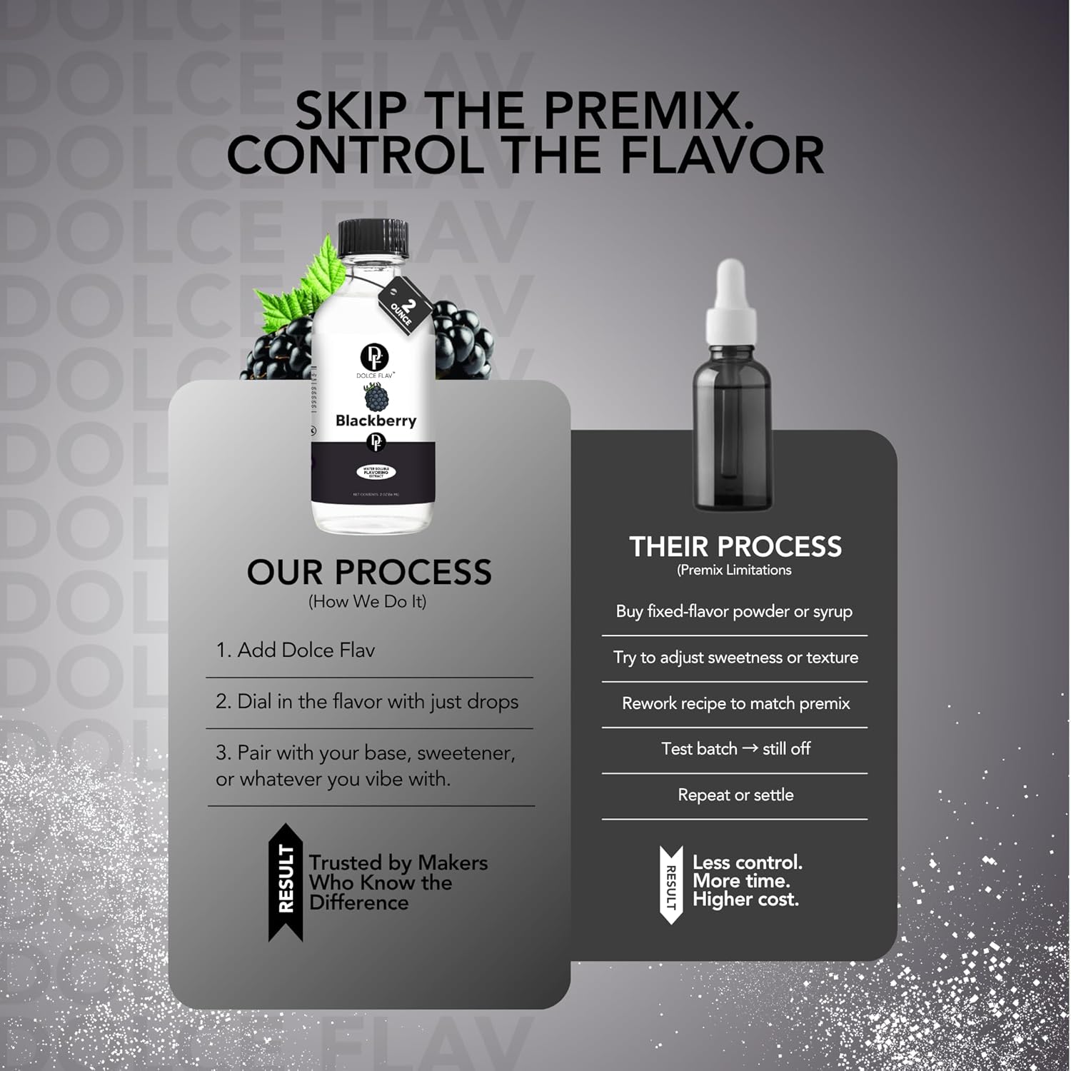 - Elevate Your Baking Adventure – Enhance your baking creations with Dolce Flav's water-based, unsweetened blackberry extract flavoring. Infuse a touch of fruity elegance into your everyday recipes, transforming your culinary experience into something extraordinary.
