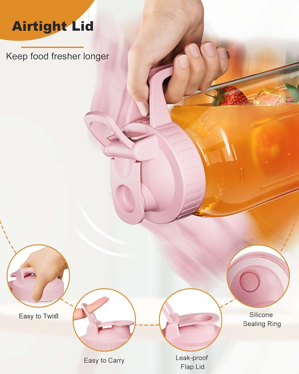 64oz Glass Mason Jar Pitcher with Lid and Spout, 2 Quart Airtight Glass Water Jug, Leakproof Wide Mouth Mason Jar Pitcher for Iced Sun Tea, Milk Storage, Cold Brew Coffee, Juice, Pink