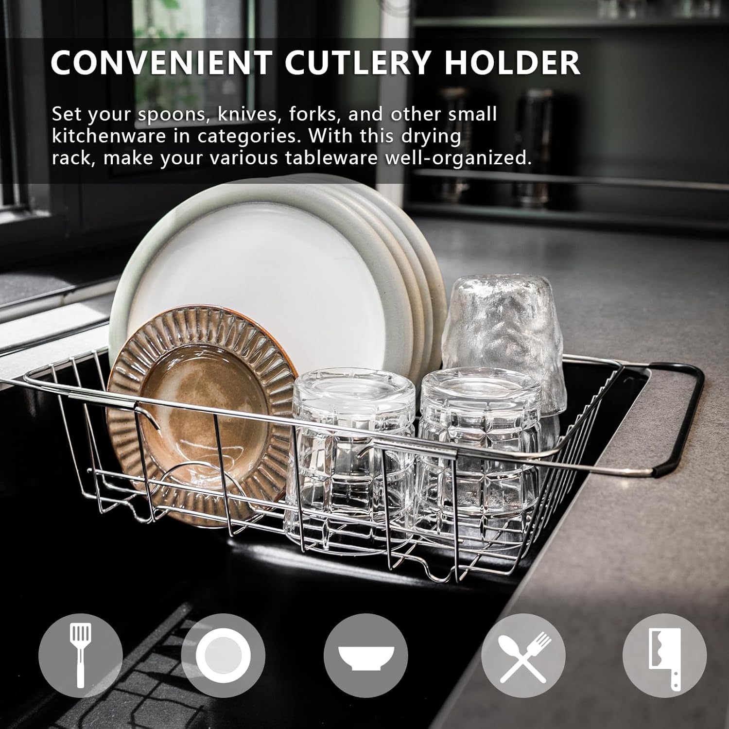 Over The Sink Dish Drainer Drying Rack - Expandable Stainless Steel in Sink Dish Drying Rack, High-Capacity, Rustproof, Easy Install, with Utensil Holder - Dish Racks for Kitchen Counter