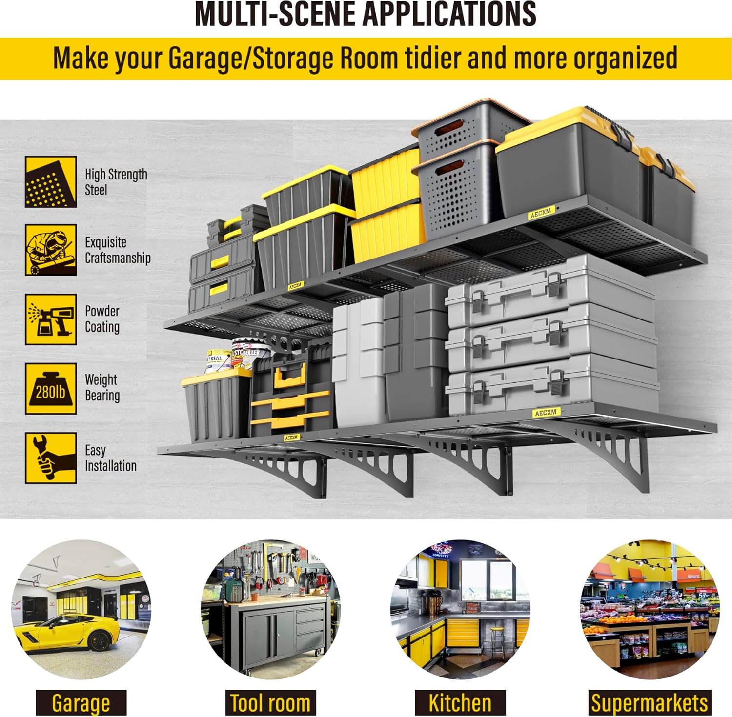 - Easy Installation: Includes high-quality screws and a detailed instruction manual, allowing one person to effortlessly complete the setup. This 2x3ft garage shelf wall mount offers ample storage space for your garage, kitchen, or pantry, keeping everything organized and within reach