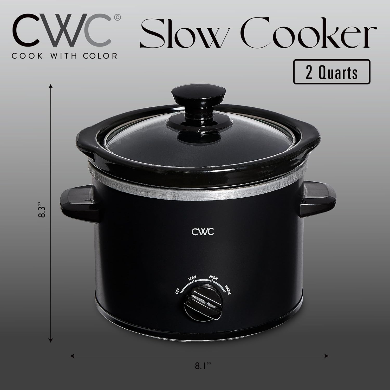 COOK WITH COLOR 2QT Mini Electric Round Slow Cooker - Adjustable Settings, Removable Stoneware Pot, Tempered Glass Lid, Dishwasher Safe, Cool-Touch Side Handles, Black