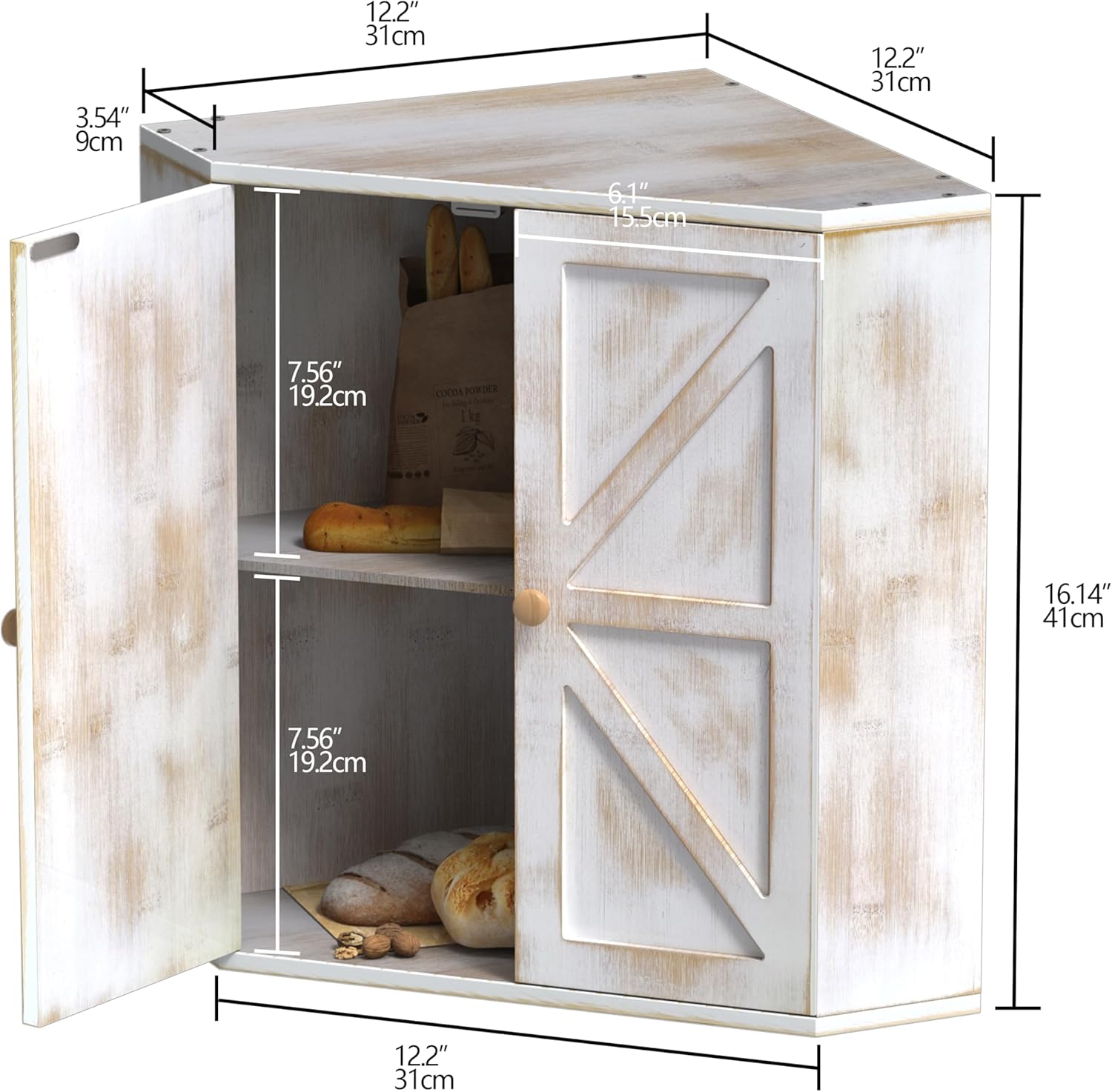 Corner Bread Box for Kitchen Counter Double Layer Bamboo Bread Storage Container Large Capacity Bread Storage Bin Farmhouse Breadbox Organizer