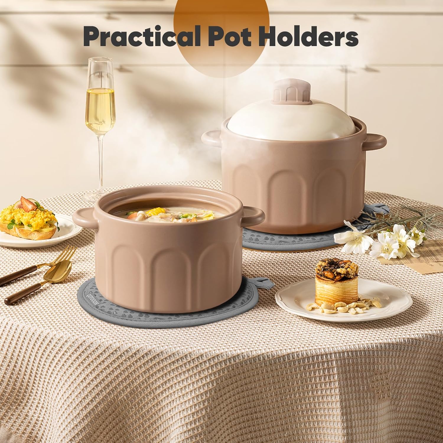 - ️Versatile Use & Easy Clean :The oven mitt and pot holder set are easy to clean and can be machine washed or hand washed.These kitchen essentials can be used for a variety of cooking tasks,including baking,grilling,stovetop cooking and more.The oven glove and pot holder are also a perfect gift for baker and cooker.