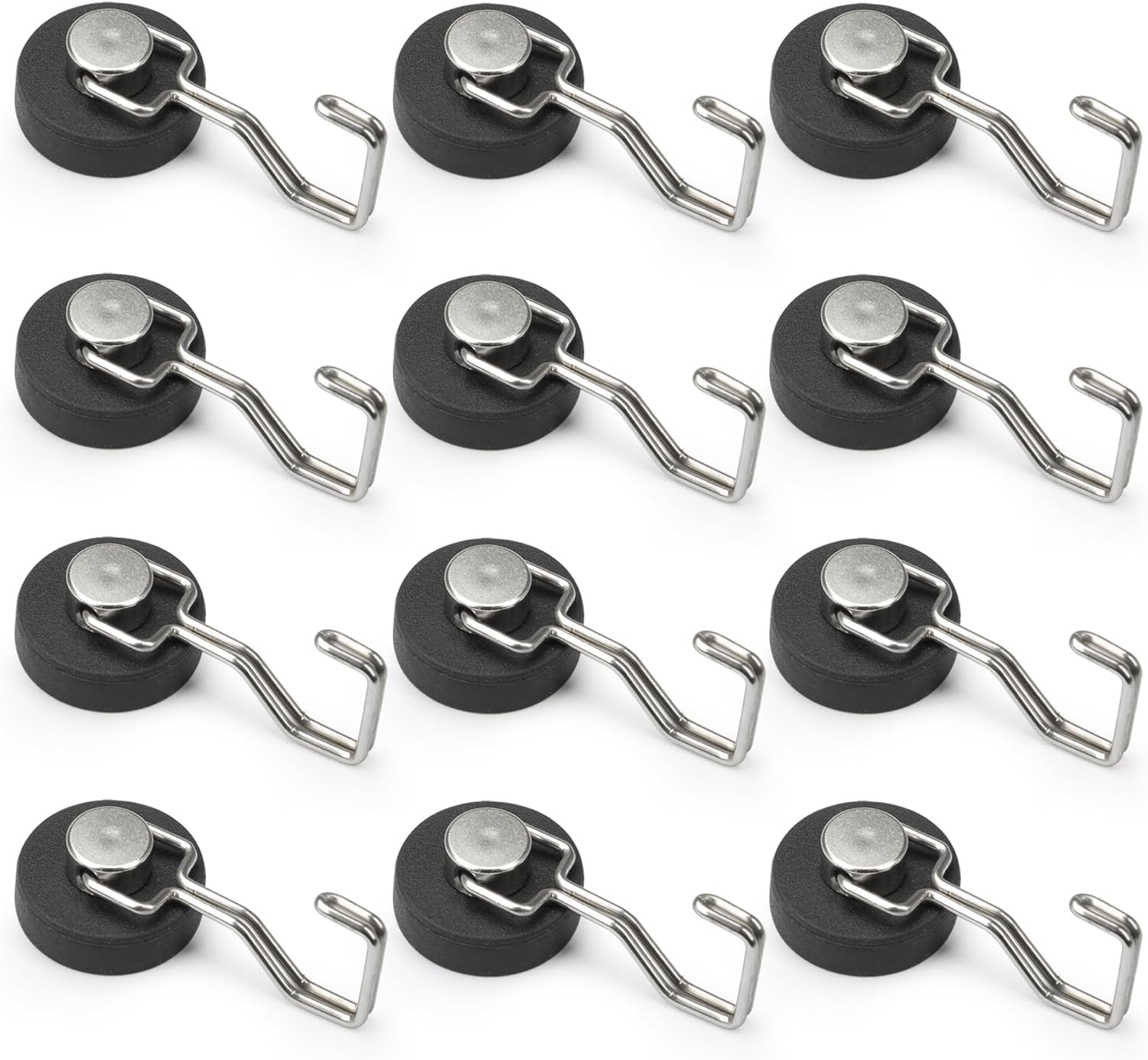 Rare Earth Strong Magnetic Hooks, Perfect for Cruise Ship Cabins and Kitchens, Waterproof Rubber Coated Magnetic Hooks(12, Sliver)
