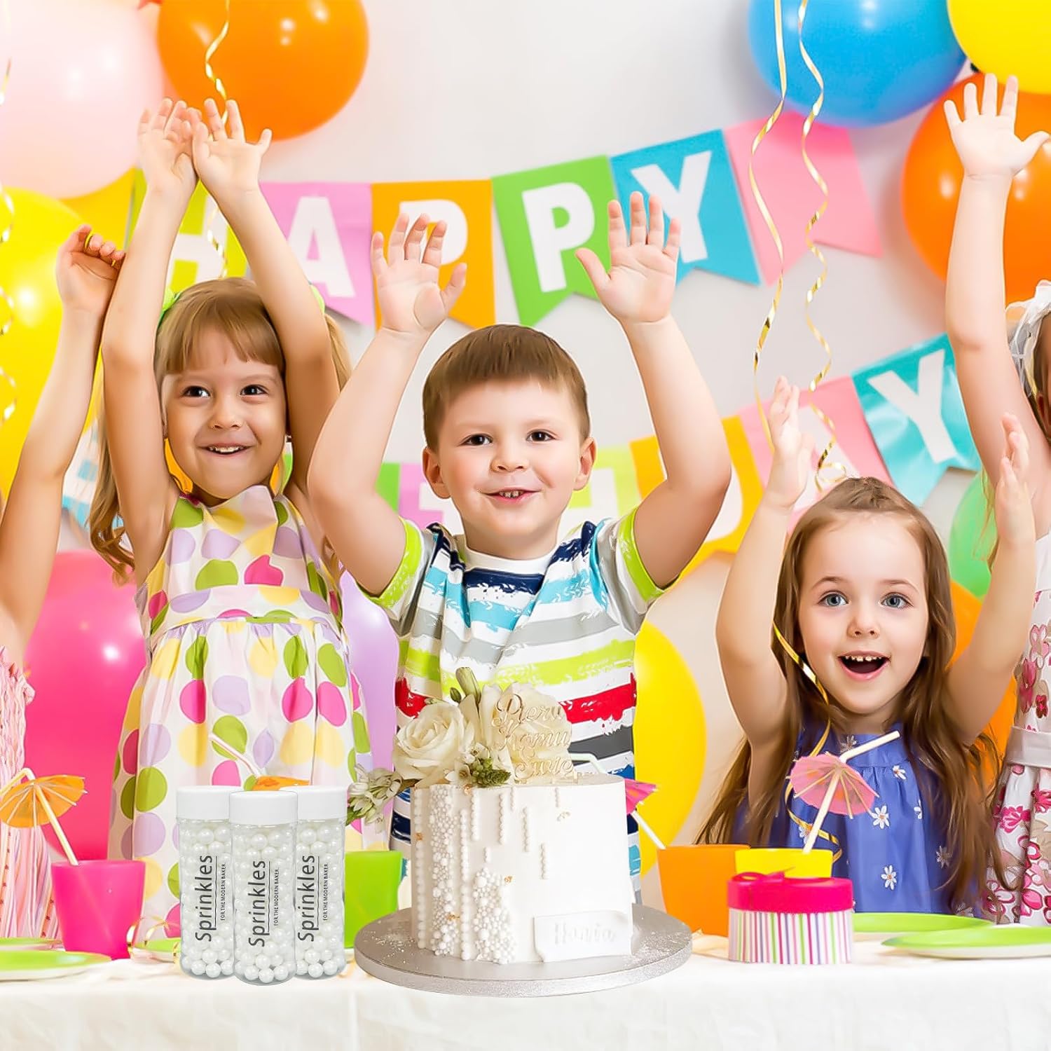 - 【Easy to use】: These white ball sprinkles can be used in many ways, for example, you can directly sprinkle them on food in large quantities, which is amazing and easy to use. You also can choose some parts of the sprinkles to decorate, as the icing for the dessert. These edible candy pearl sprinkles are nice decoration such as winter Christmas white themed birthday party, baby shower, wedding,bridal showers, anniversary, engagement etc.