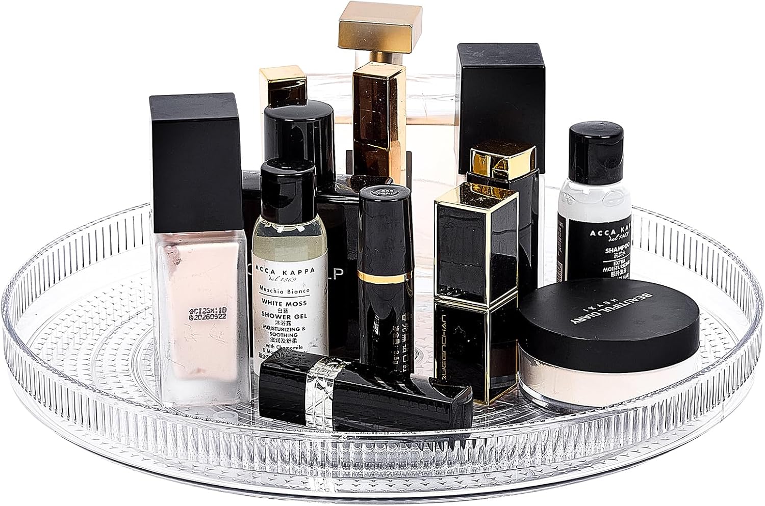 - MULTIPURPOSE ORGANIZER: This versatile Lazy Susan turntable is perfect for a variety of uses. Organize your spices, seasonings, snacks or even display items on a shelf. It also serves as a stylish cosmetics, perfumes holder or a bathroom organizer, keeping your desktop neat and tidy.