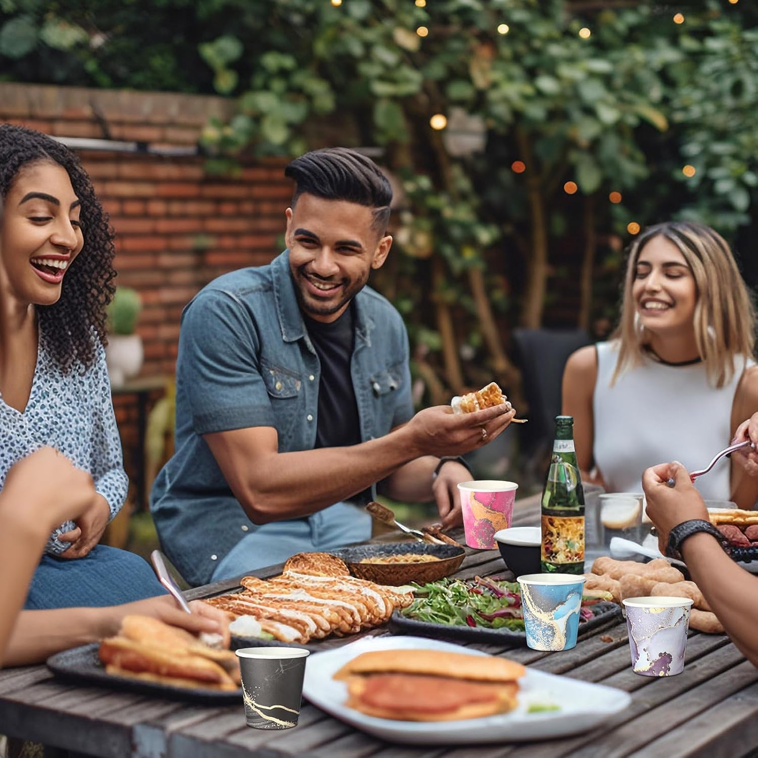 - Single Use: the paper drink cups are disposable, you can directly throw them out after use, saving your cleaning time and energy; And they are very suitable for kids, teens, adults, old people