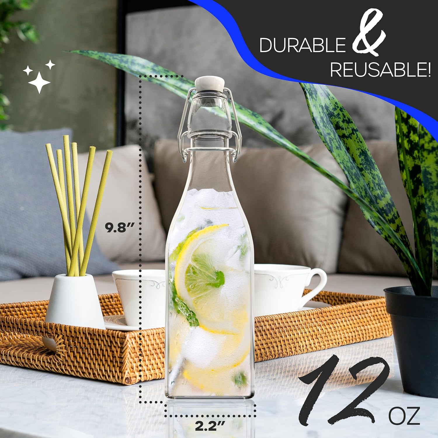 - Superior Durability: The Nevlers 12 Oz Clear Swing Top Bottles offer high-quality glass water bottles built to last. They feature a steel wire closure with a rubber gasket for a freshness & flavor preserving seal. Perfect for use as glass bottles for juicing , simple syrup bottles , limoncello bottles , & vanilla extract bottles . They're even great as small wine bottles ! These small bottles for liquids make bottling projects effortless & stylish with a combination of functionality & elegance.
