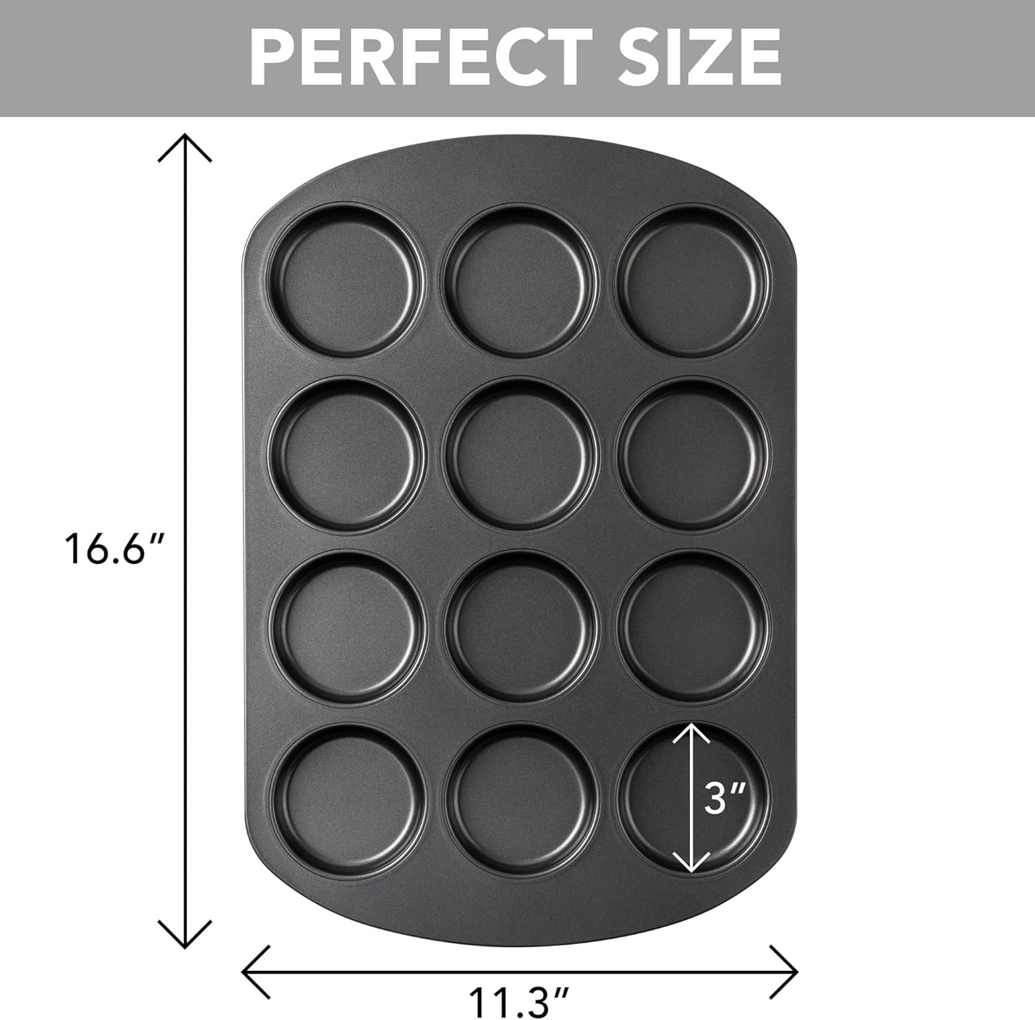 - 12 CUP MUFFIN TOP PAN - Our muffin top pan with 12 cups, perfect for the whole family. With shallow cup design, it will be perfect for creating muffin tops. You won't miss best part of your muffin.