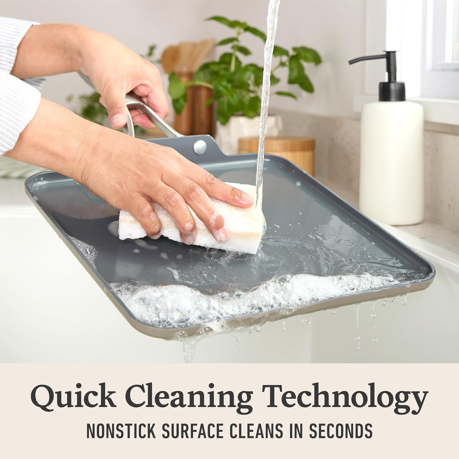 - Metal Utensil-Safe: Cooking from scratch deserves scratch-free cookware, so our ceramic pans have scratch-resistant interiors.