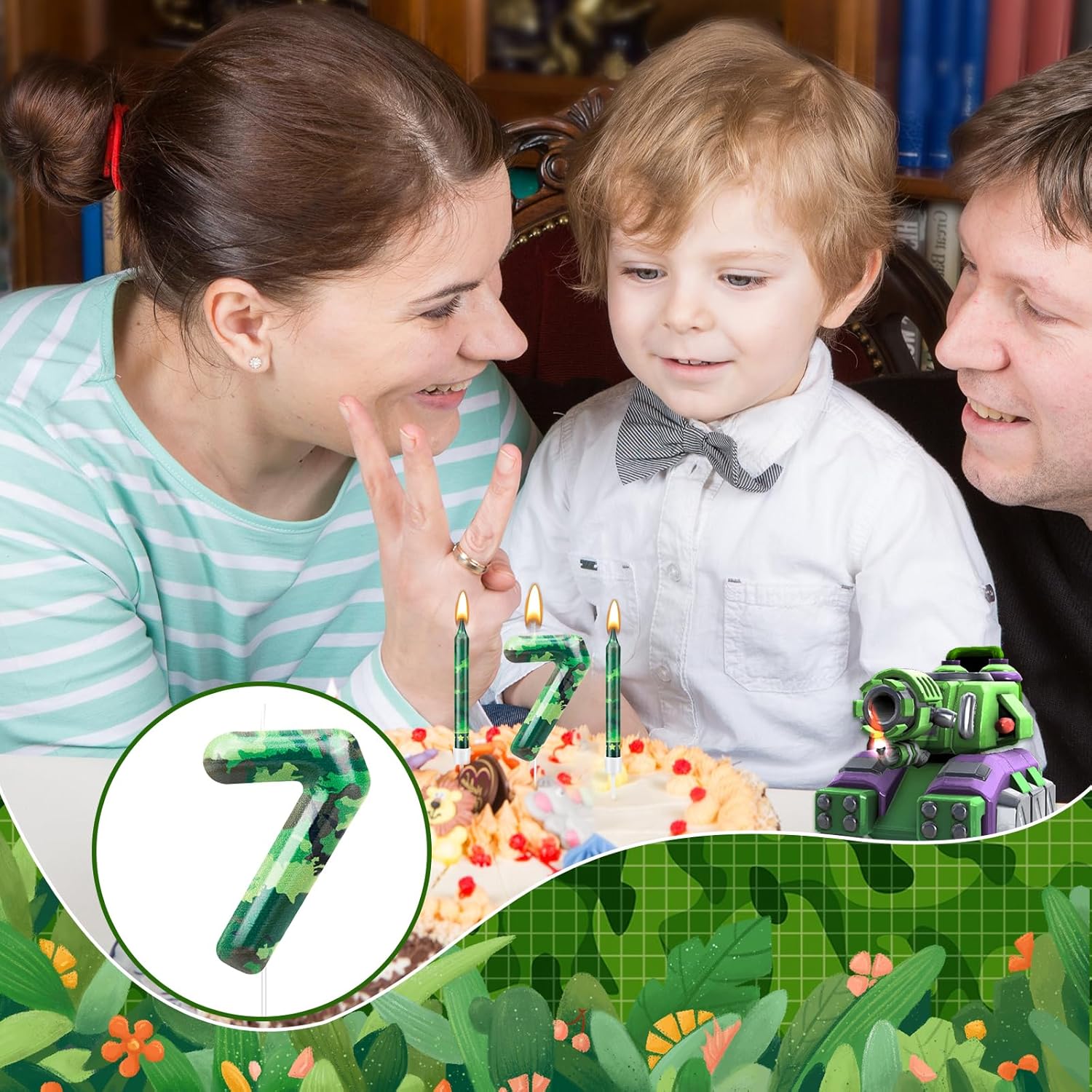 13 Pcs Camo Themed Birthday Candles 12 Army Themed Birthday Cake Candles and Number 7 Candle Cake Topper for Birthday Party Camouflage Motif Party Hunting Themed Party Decoration Supplies (Number 7)