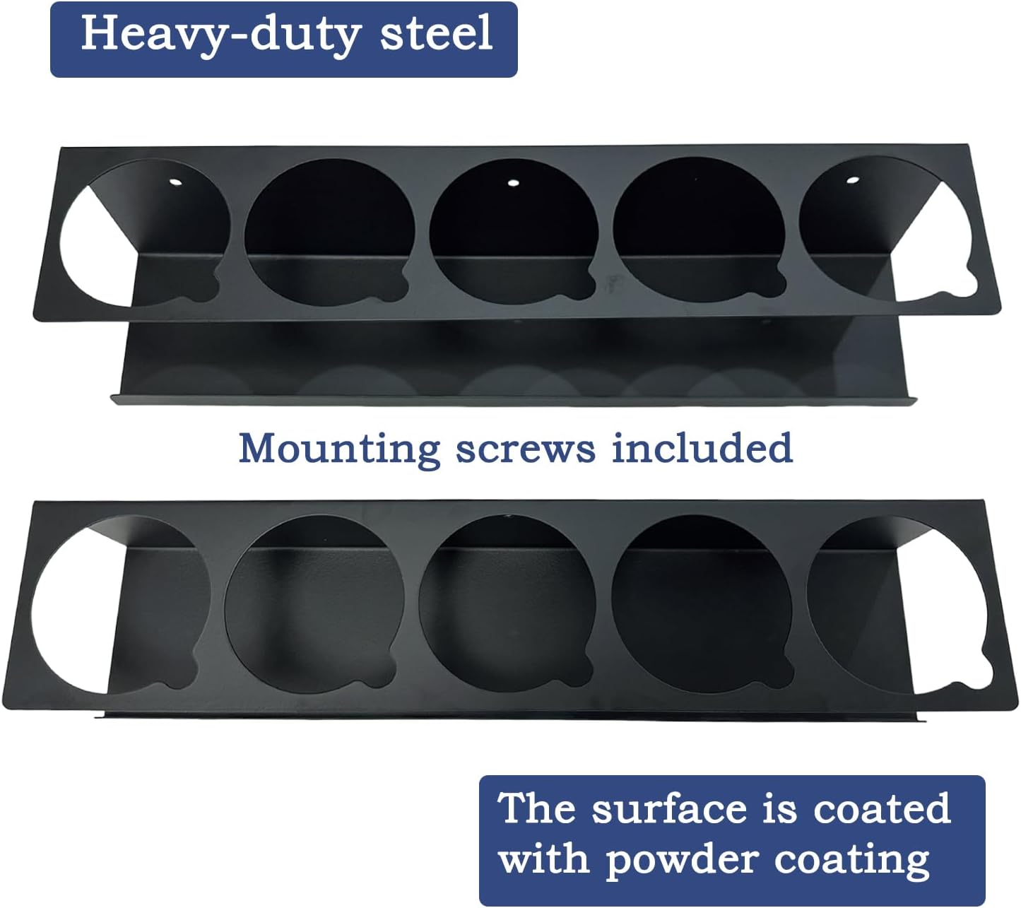 - 【Package Contains】The package includes two spray can holder and mounting screws.A total of 10 cans can be stored.