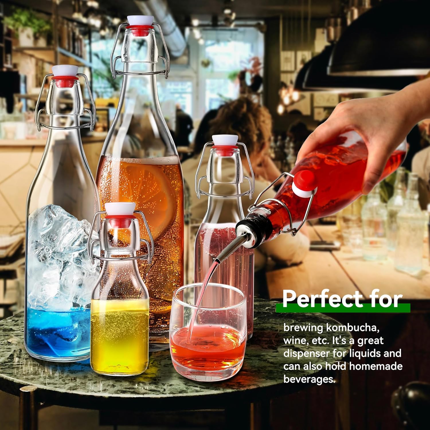 - High Quality & Environmentally Friendly: Our flip-top glass bottles are made of high quality thick glass, the metal wire at the mouth of the bottle is made of 304 stainless steel which can effectively resist corrosion, and the high quality material can maximize the service life of the product. The bottles can be recycled after cleaning, which is more durable and environmentally friendly compared to plastic products.