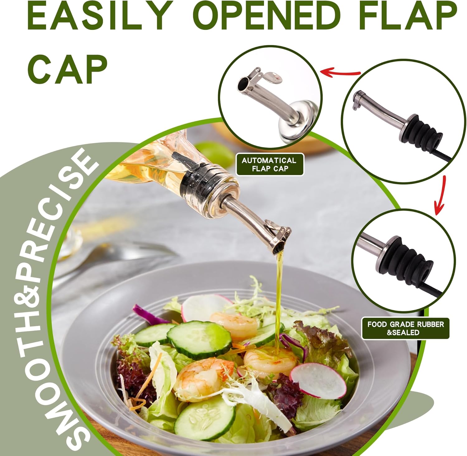 - 【Multi-Purpose Usage】:The oil and vinegar cruet is perfect for olive oil, sauces, wine, vinegar, chili oil, garlic oil, scallion oil, and more. It is an ideal choice for restaurant chefs to dispense various oils and sauces.