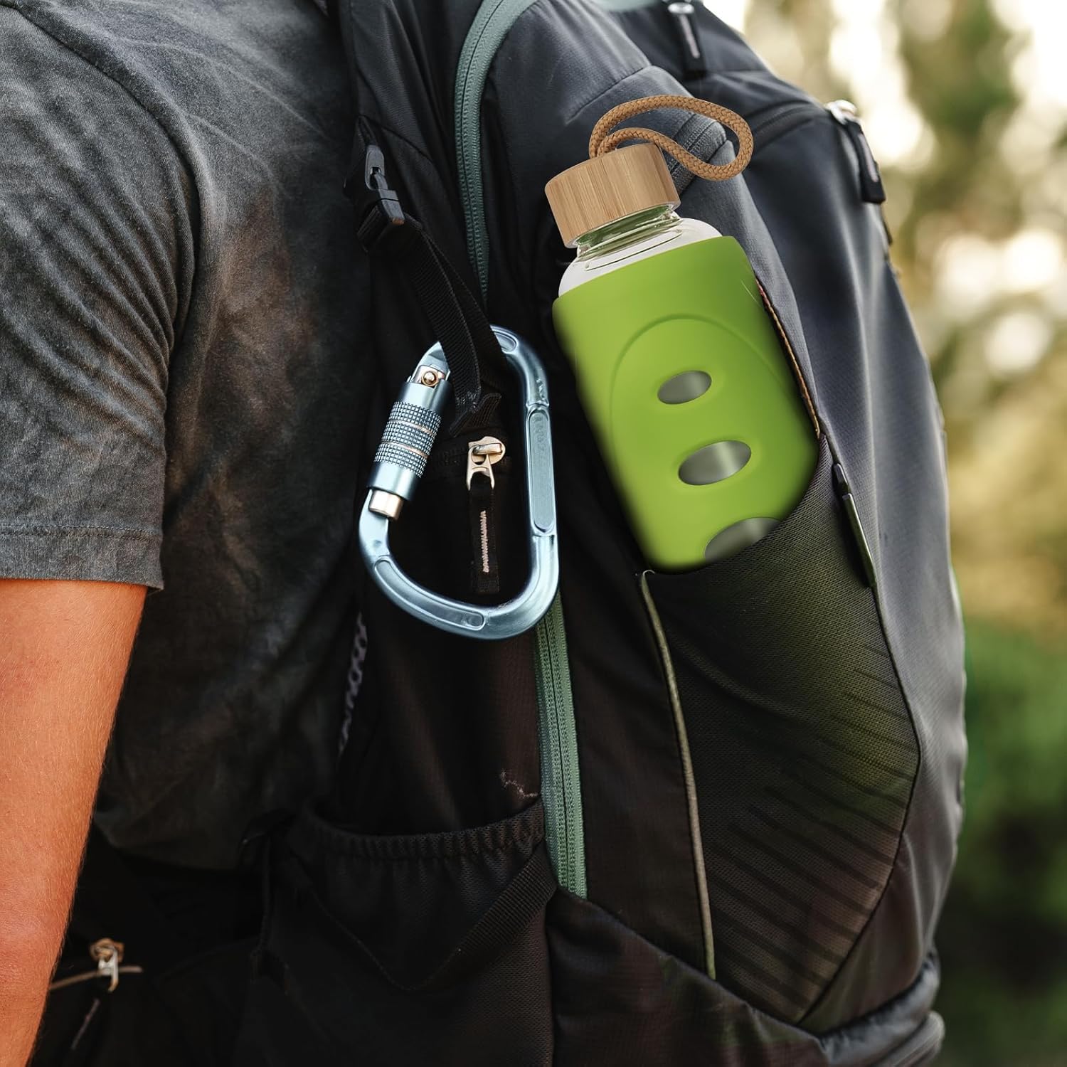 - STYLISH AND PORTABLE : Our sleek design makes the glass water bottle has an ideal travel buddy and elegant appearance. Outer Silicone sleeve offers secure grip and helps protect against breakage.