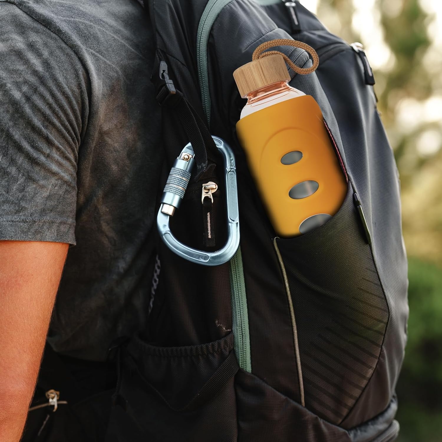 - STYLISH AND PORTABLE : Our sleek design makes the glass water bottle has an ideal travel buddy and elegant appearance. Outer Silicone sleeve offers secure grip and helps protect against breakage.
