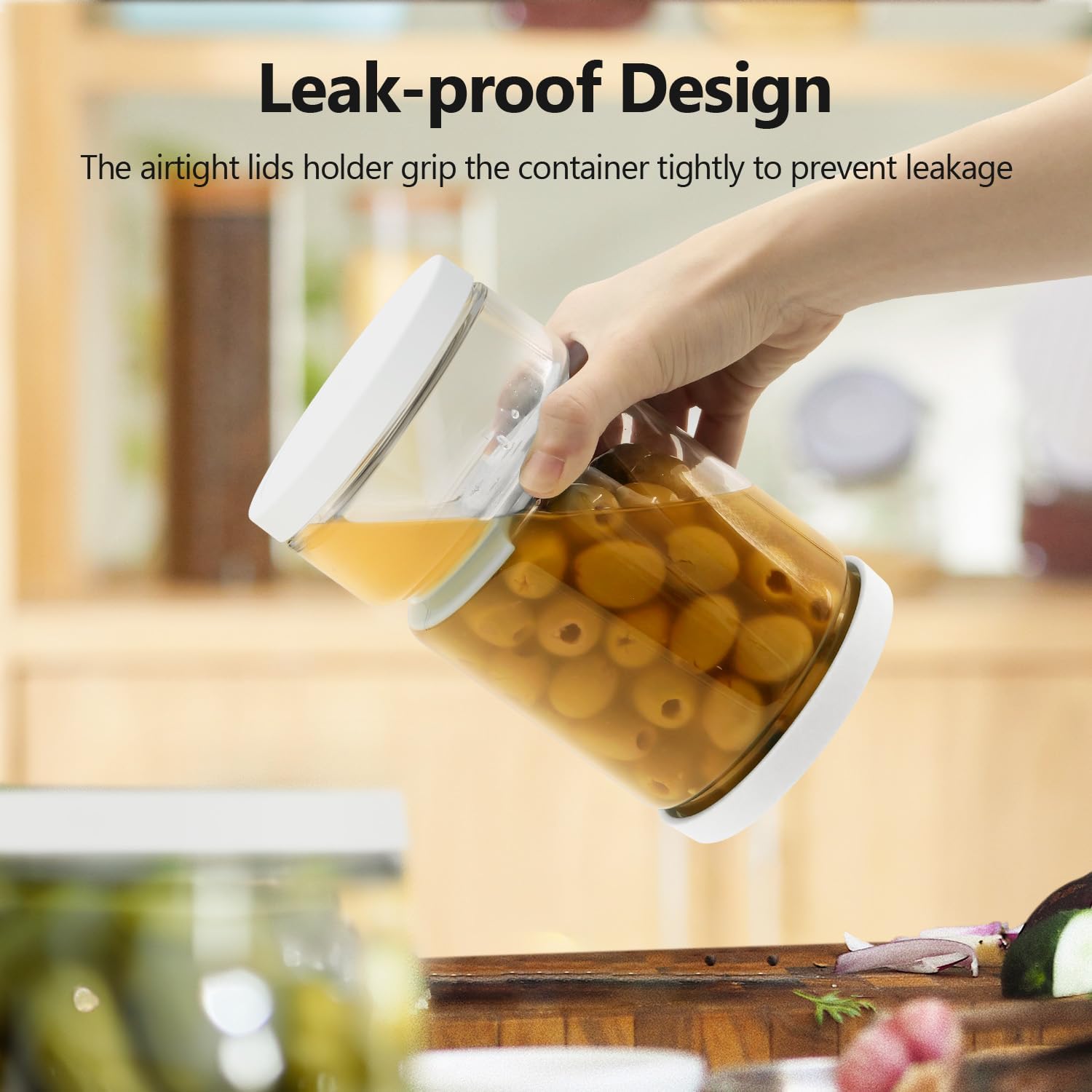 - Leak - Proof and Freshness - Locking: The airtight silicone lids create a tight seal, preventing any leakage and keeping your pickles, olives, or other stored foods fresh and flavorful for an extended period.