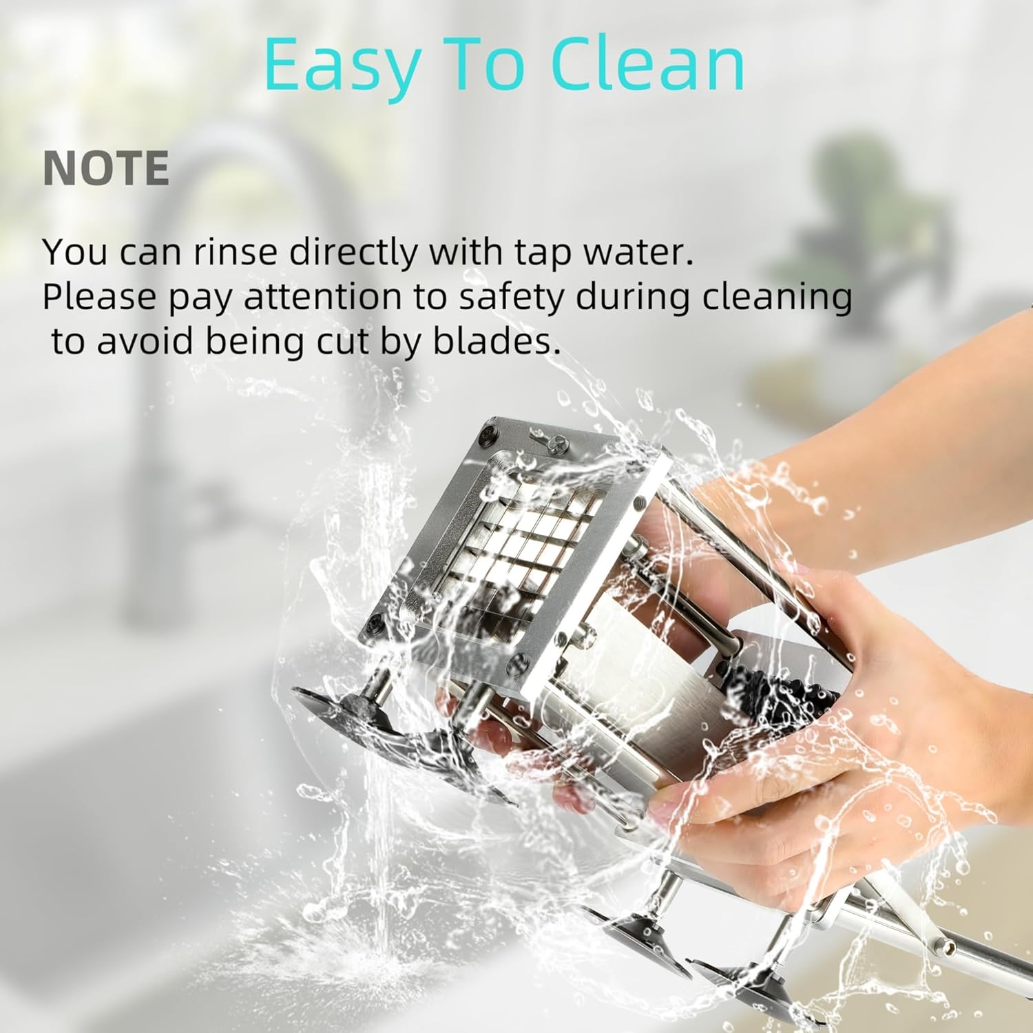 - High Quality:Our french fry cutter is made of high-quality stainless steel and alloy materials, which can ensure the product quality is sturdy, long-lasting use without rusting, and easy to clean and store.