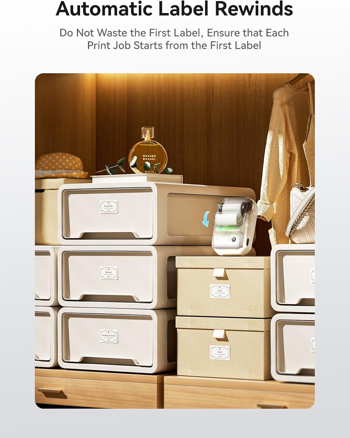 - Portable and Rechargeable: The thermal label printer weighs just 293g, making it compact enough to fit in your pocket and easy to carry anywhere. It features a built-in 1500 mAh rechargeable battery, providing up to 100 days of standby time on a single charge.