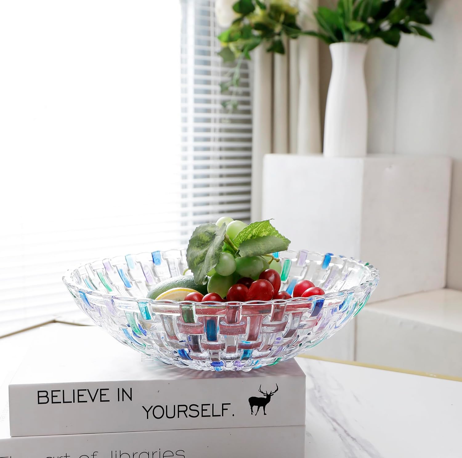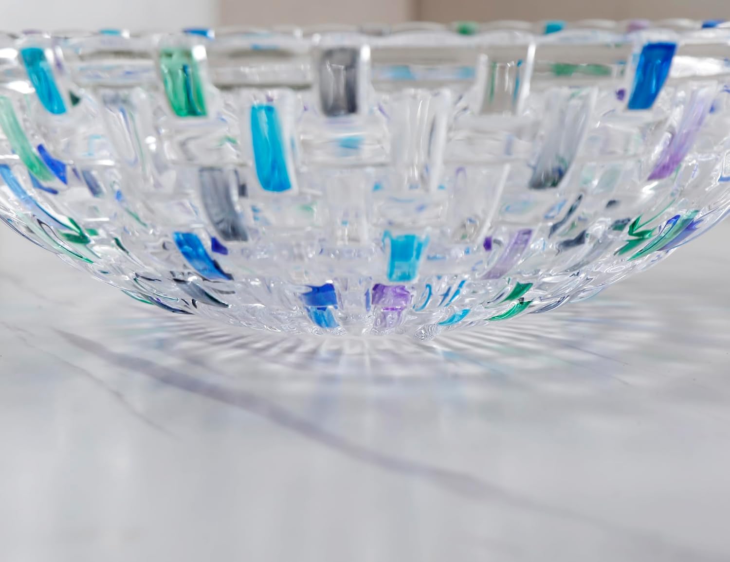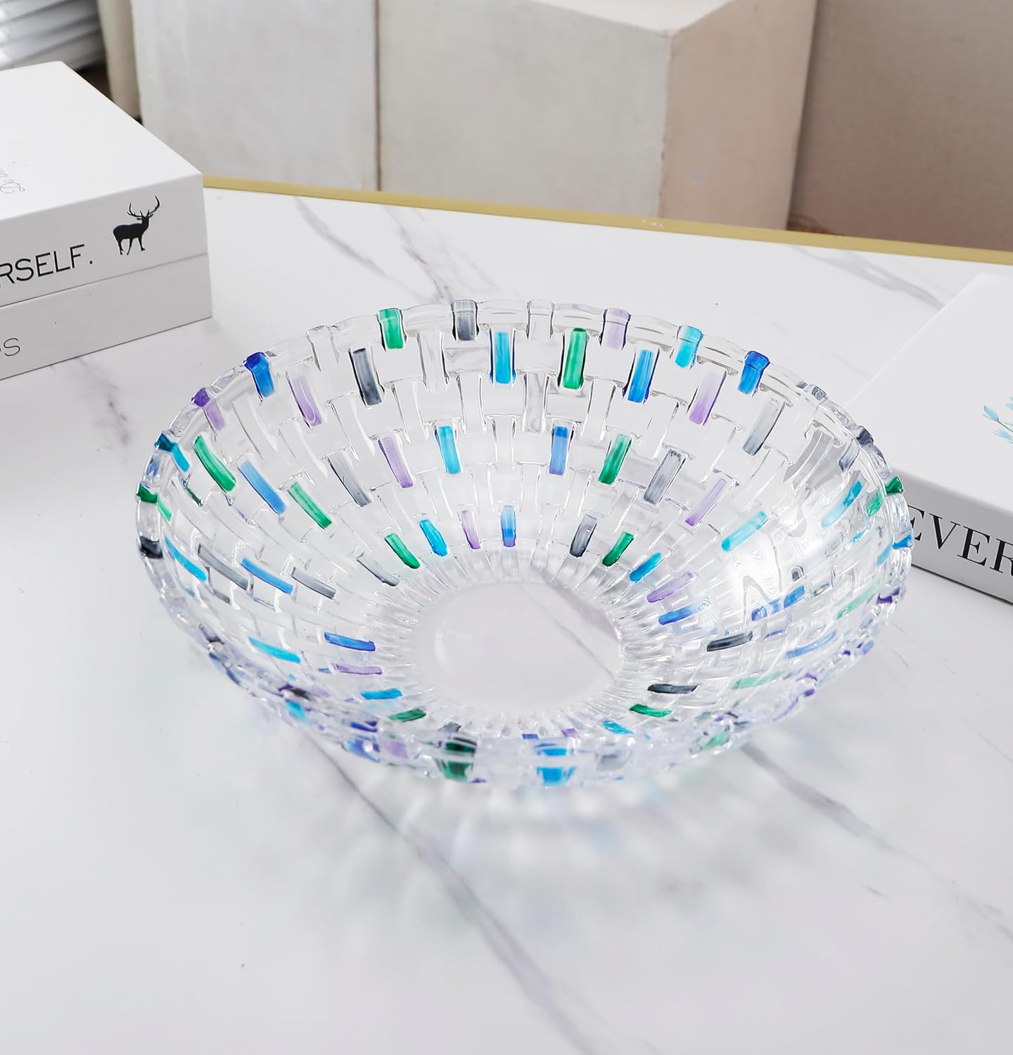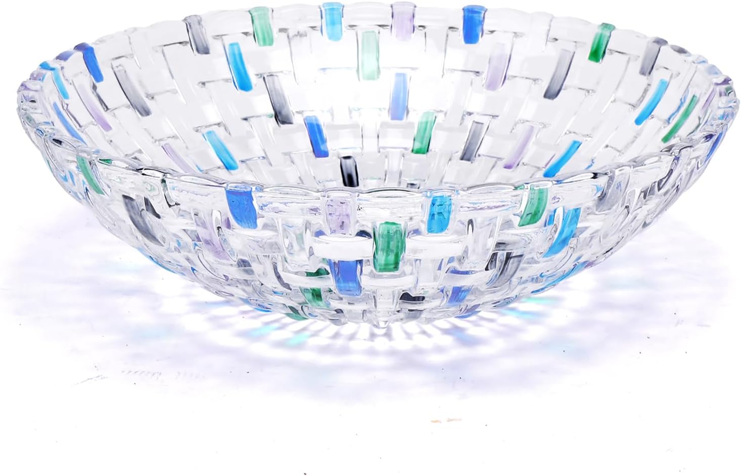 Hand Painted Blue Woven Glass Crystal Salad & Fruit Bowl Decoration,Centerpiece For Home,Office,Wedding Decor, Fruit, Snack, Dessert, Server (Blue)