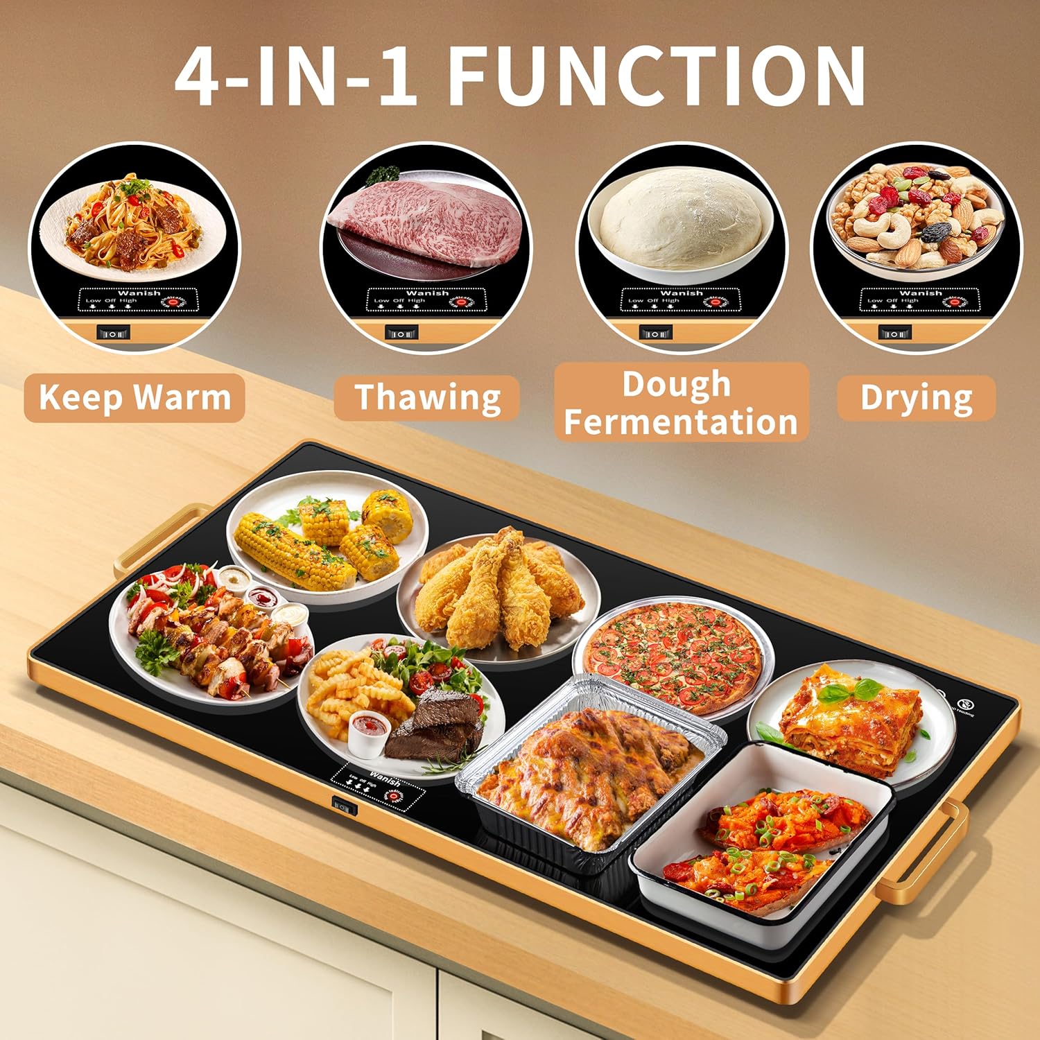 - Multi-functional Uses - Besides being used to keep food warm for party, the Wanish electric food warmer is also a multi-functional home helper. It has a range of functions, defrosting, promoting dough fermentation, drying, heating face masks, warming milk/wine/tea and more. The food warming mats for countertop can meet your various needs all year round and enhance your lifestyle on a daily basis, also a ideal choice for catering food warmers.