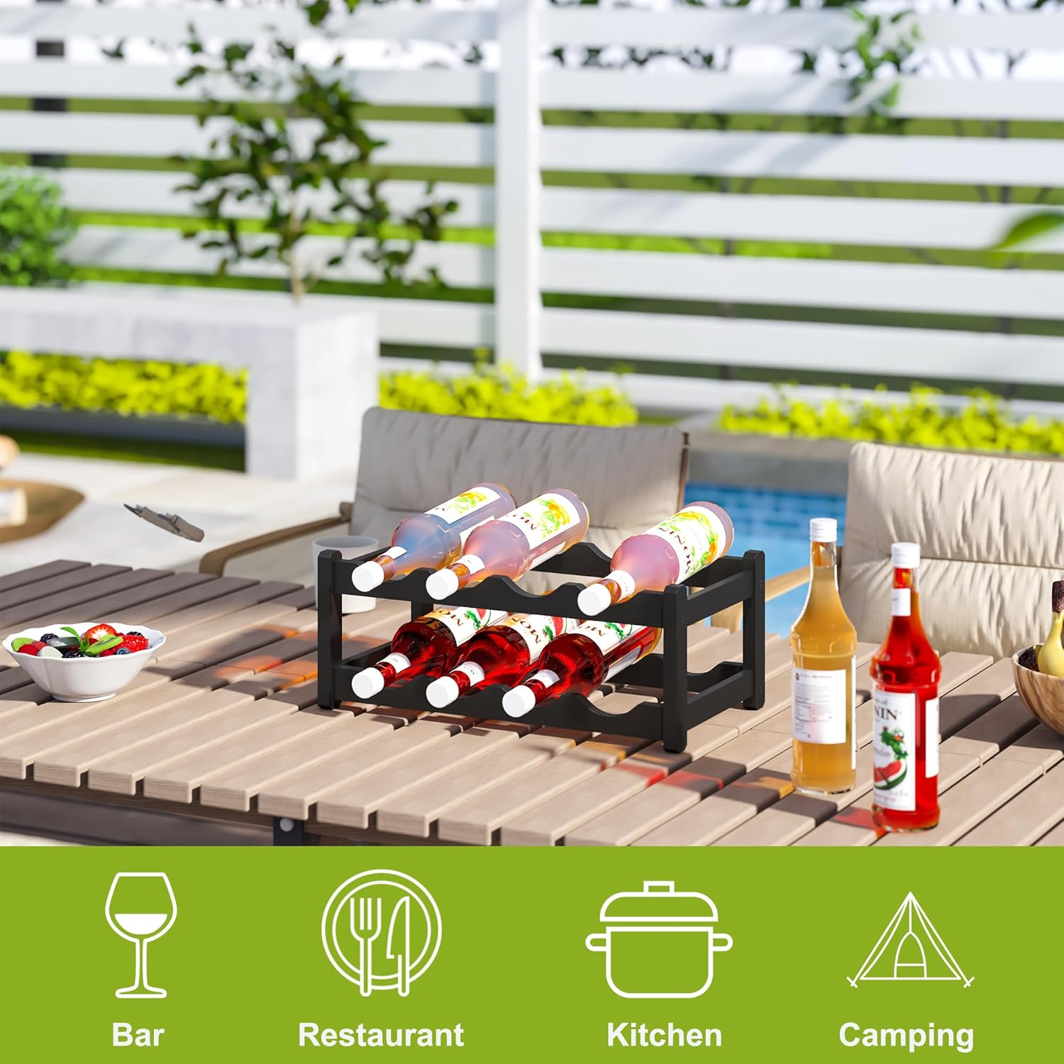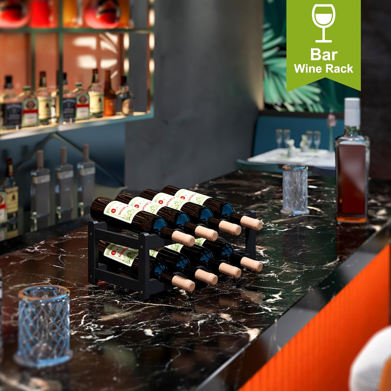 BMOSU Bamboo Wine Rack Wine Storage Cabinet Shelf 8 Bottle Wine Racks Countertop Sturdy for Kitchen Dining Room Pantry - 2 Tiers Wine Rack (Black)