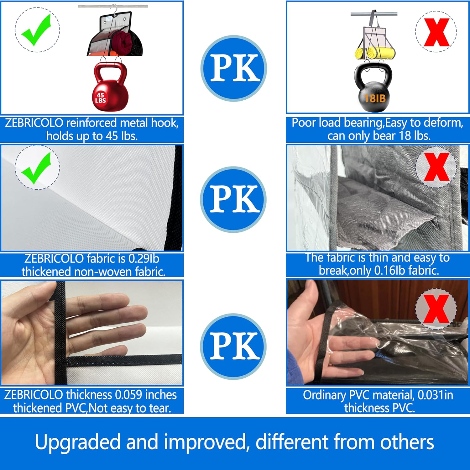 - Material : thickened non-woven fabric; , Heavy Duty Hooks- holds the weight(40lb)