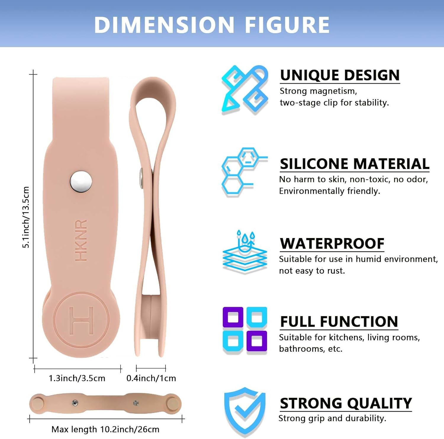 2 Pcs Strong Magnetic Towel Clips for Kitchen, Waterproof Silicone Towel Holder, Multi-Purpose Towel Holder for Bathroom, Kitchen, Outdoor Use (2 Pcs Khaki)