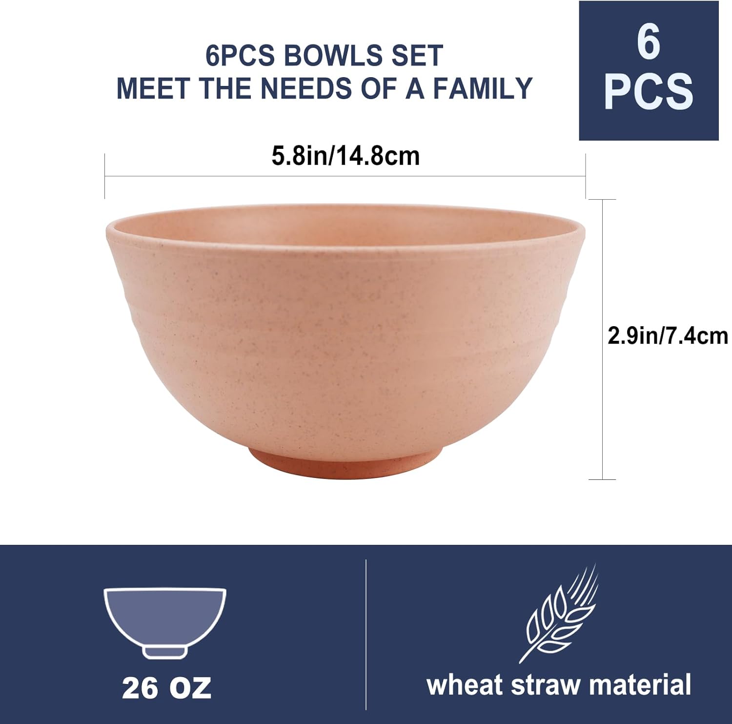 26 oz Wheat Straw Bowls Set of 6,Microwave & Dishwasher Safe Cereal Bowls for Kitchen,Lightweight Kids Bowls for Soup,Salad,Fruit,Snack and Oatmeal-Sweet Series