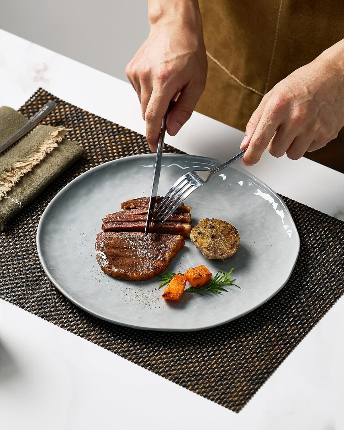 - 【Premium Material & Durability】Crafted from premium white porcelain, this lead-free, cadmium-free, and BPA-free dishes set ensures safe with durability. The high-fired porcelain's weight and thickness resist chipping, scratching, and daily wear, keep the ceramic dinner plates always glossy and durable.
