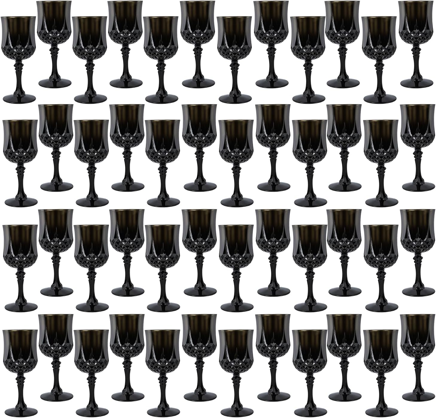 Plastic Wine Glasses,Plastic Goblets Vintage Style Cordial Drinking Glasses for Wedding Reception, Grand Event Party Supplies (48, Black)