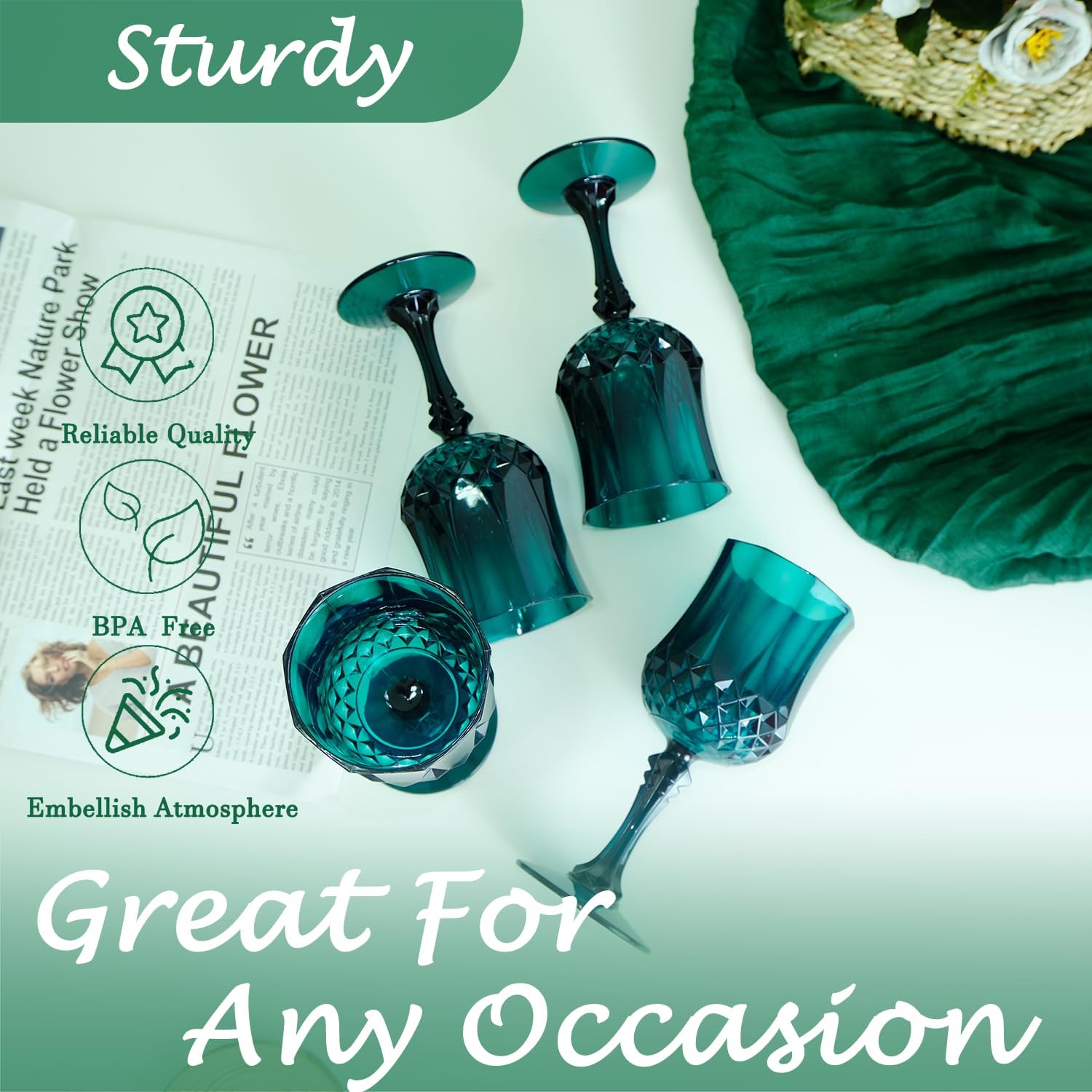 Plastic Wine Glasses,Plastic Goblets Vintage Style Cordial Drinking Glasses for Wedding Reception, Grand Event Party Supplies (12, Green)