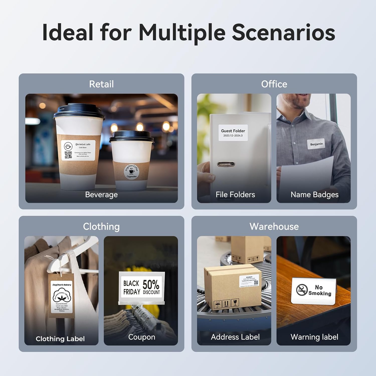 - 【Widely Used】Ideal for Barcode,QR code labels, address,mailing labels, product label, food ingredient labels , clothing label, filefolder labels, fixed Assets, name id card, shipping label, bottle label etc...