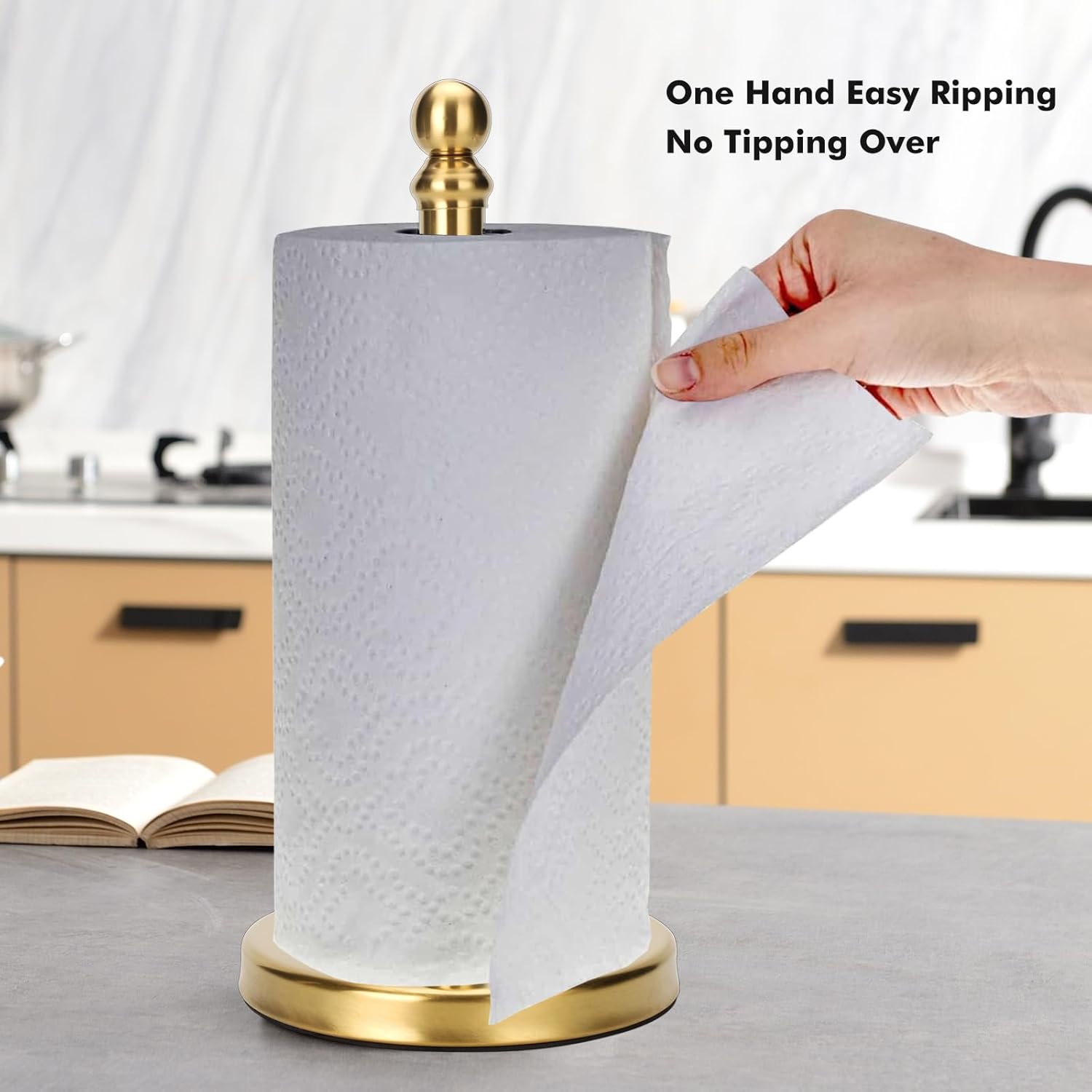 Gold Paper Towel Holder Countertop with Weighted Stainless Steel Base, One-Handed Design No Tipping Over, Standing Paper Towel Holder Standing in Brushed Gold Finish
