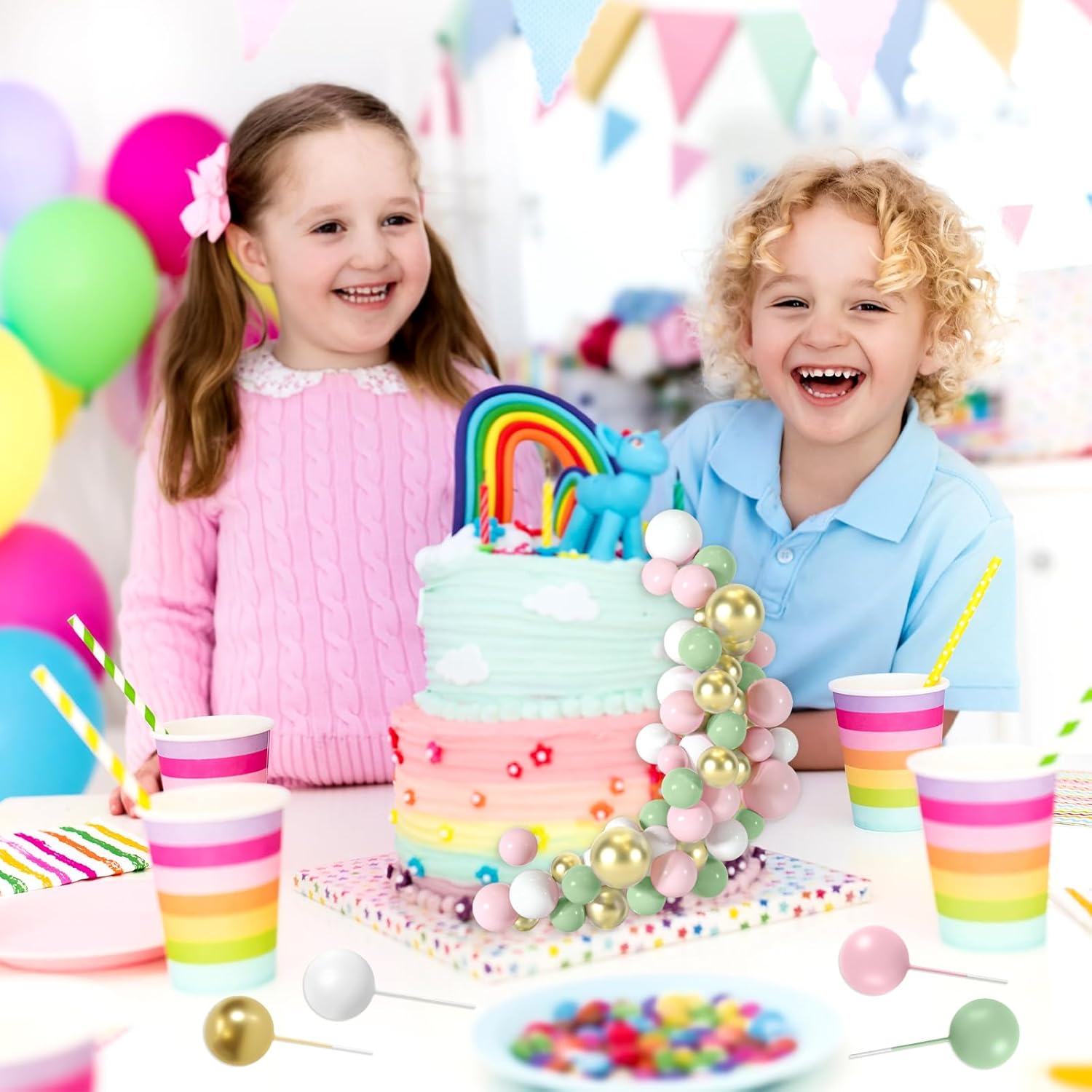 - Wide Application: These ball cake decorations are colorful and cute, can be used for birthday cakes, cupcakes, fruit and other desserts decorations. The cake insert toppers are an ideal cake decoration for birthday party, baby shower, garden party, home party, Valentines, wedding, anniversary party, Christmas, Halloween and so on