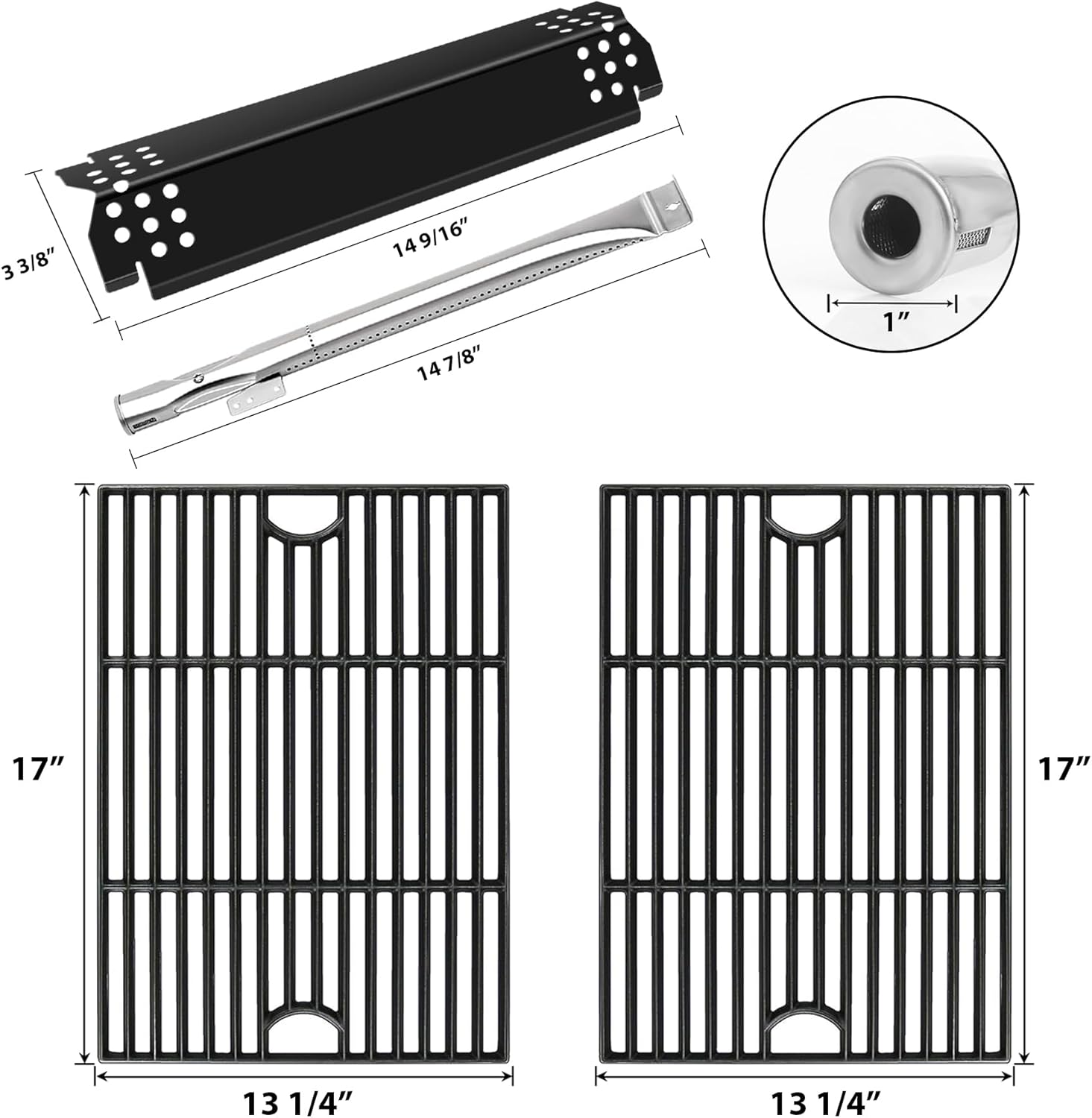 - BURNER&HEAT PLATE: Made of porcelain steel heat plate and stainless steel burner tube replacement set, corrosion resistance and heat resistance, easy to install. Distributes the flame evenly, allowing the fire to cook the meat at an even rate, making your grill perform like new