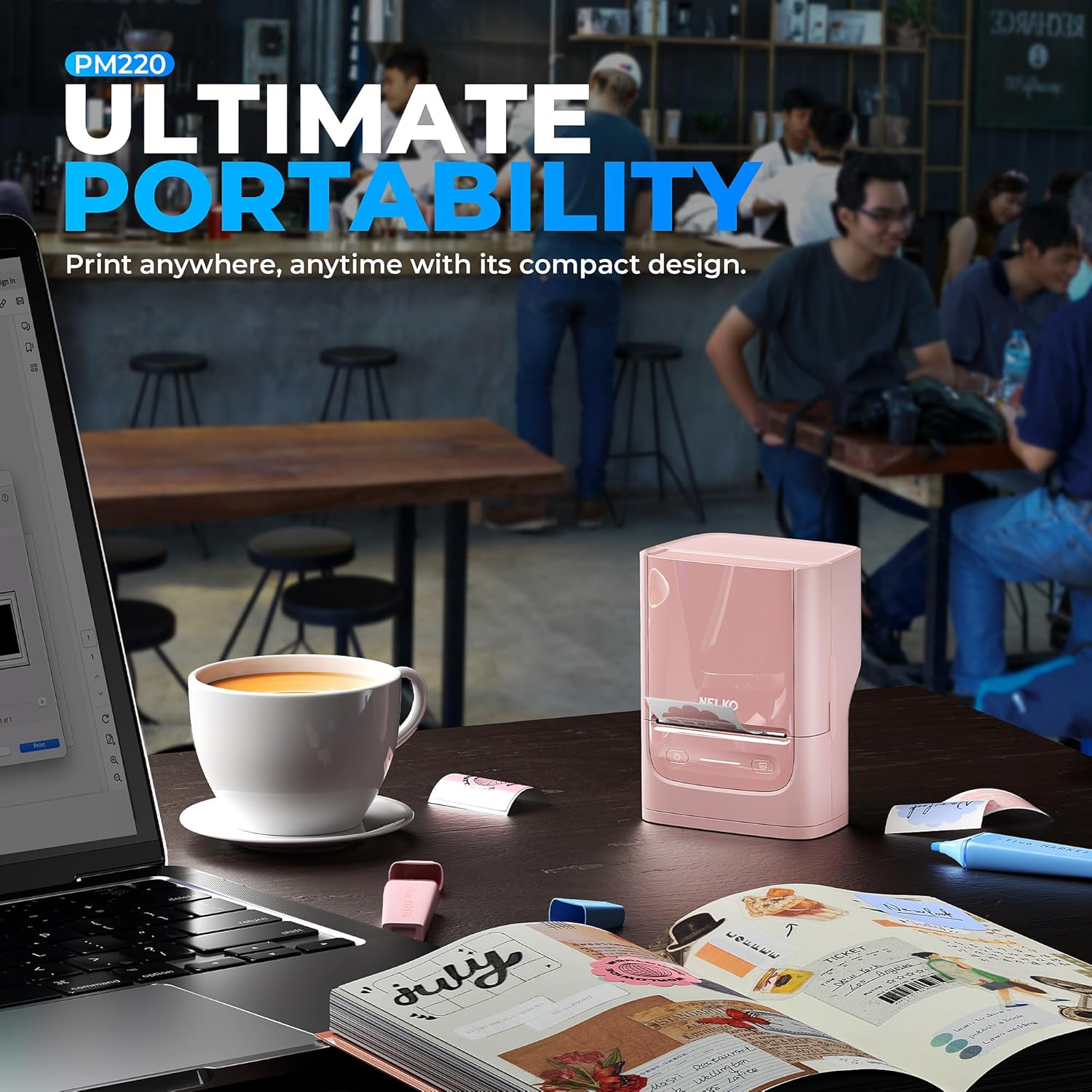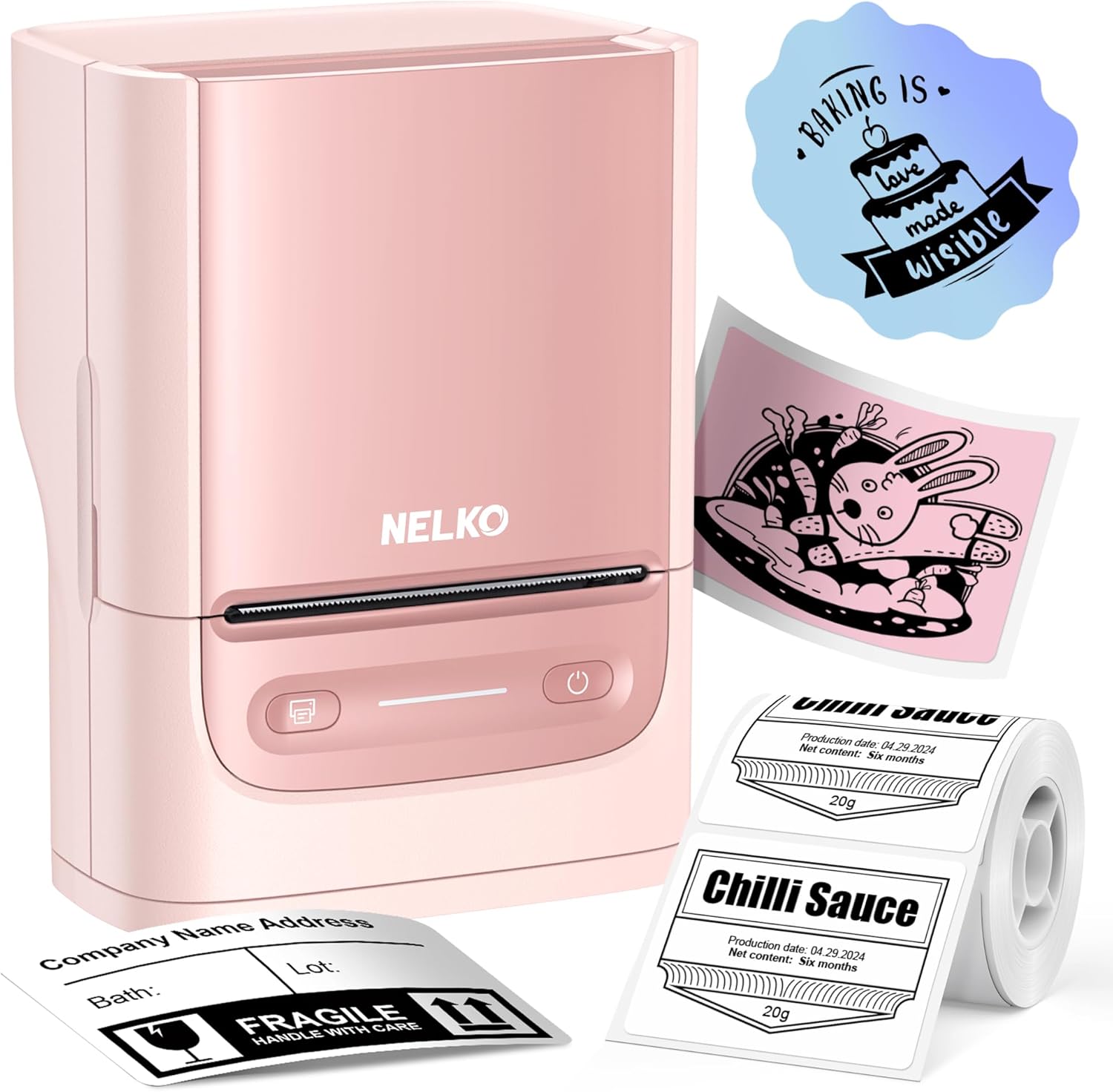 Nelko PM220 Bluetooth Label Maker Machine with Tape, 2 Inch Portable Thermal Printer for Small Business, Address, Logo, Clothing, Sticker Printer for Phones & PC, Pink