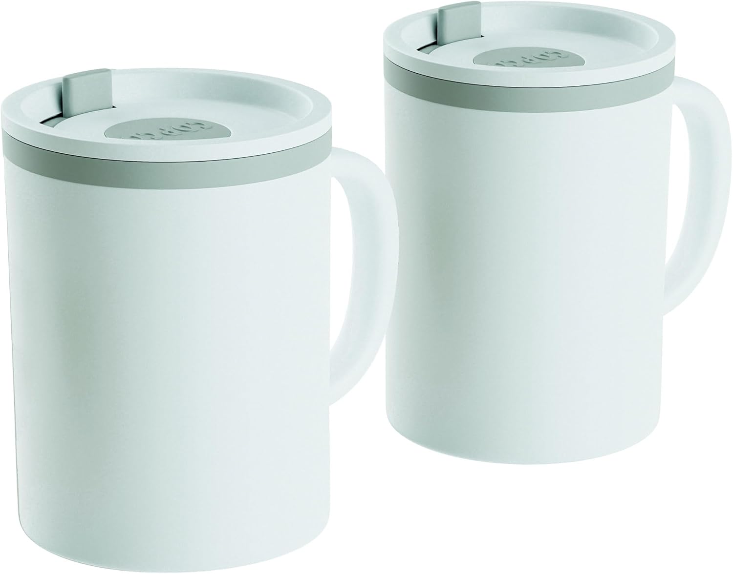 Copco Iconic 16oz Double Wall Insulated Desk Mug with Lid & Handle, Set of 2, BPA-Free Reusable Plastic, Spill-Proof, Microwave & Dishwasher Safe, Wide Mouth, Cup Holder Friendly (Grey)