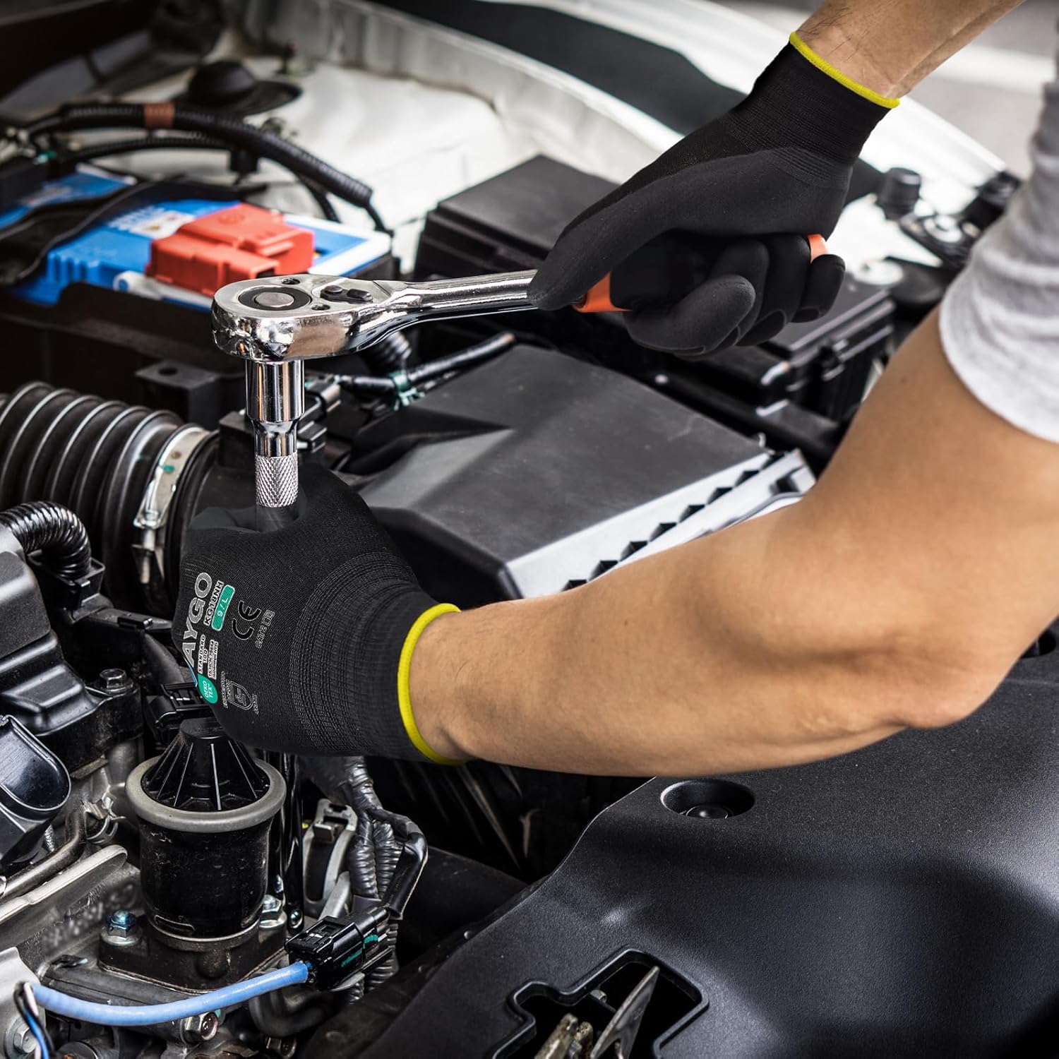 - SUPERIOR GRIP and ABSOLUTELY BREATHABILITY:Micro-Foam Nitrile coatings are compatible with light oils and will provide a good grip and excellent abrasion resistance. Ultrathin Design provide absolutely breathability and with water repellent performance