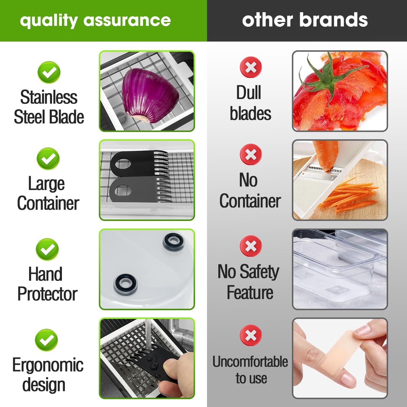 - Sturdy and Durable - This vegetable chopper with container is made of super hard ABS plastic, making it easy to cut vegetables no matter how many meals you prepare. Our vegetable cutter is designed with high quality, BPA-free materials in mind for your safety.