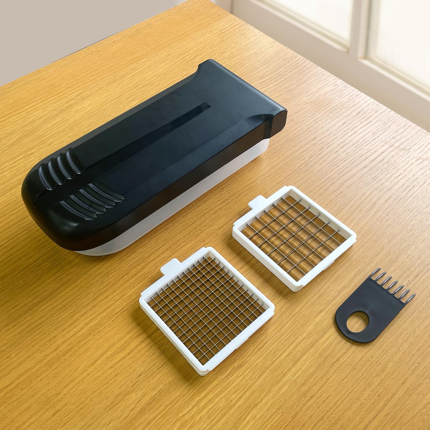 - Easy pre-meal preparation - Our vegetable cutter is a must-have tool in the kitchen. Everyone wants to eat healthier, but doesn't have much free time. Our cutters cut potatoes, tomatoes, cucumbers, carrots, etc., into small pieces with a strong, rust-proof blade. The stainless steel blade keeps the razor sharp, making the dicing crisper and smoother.