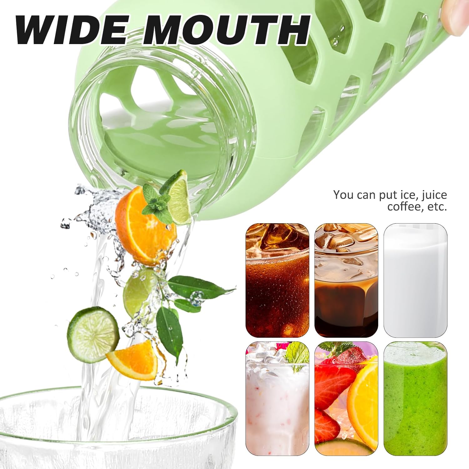 - GLASS WATER BOTTLES WITH TIME MARKER:MUKOKO 24oz glass water bottle with time marker preserves the purity of water.This is a very handy way to keep up with daily water intake,stay hydrated and healthy.