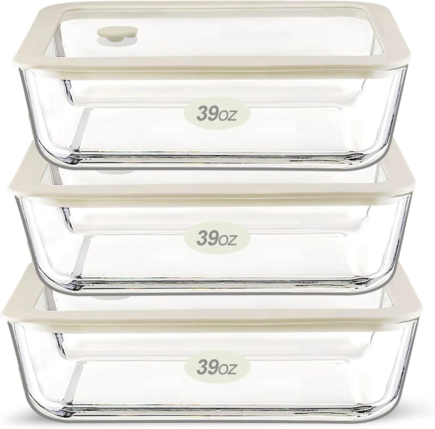 Urban Green Glass Food Container Set with Glass Lid, 3 Pack, Food Storage Containers Set, Airtight, LeakProof, 100% Plastic Free, Meal Prep Containers (White Color)