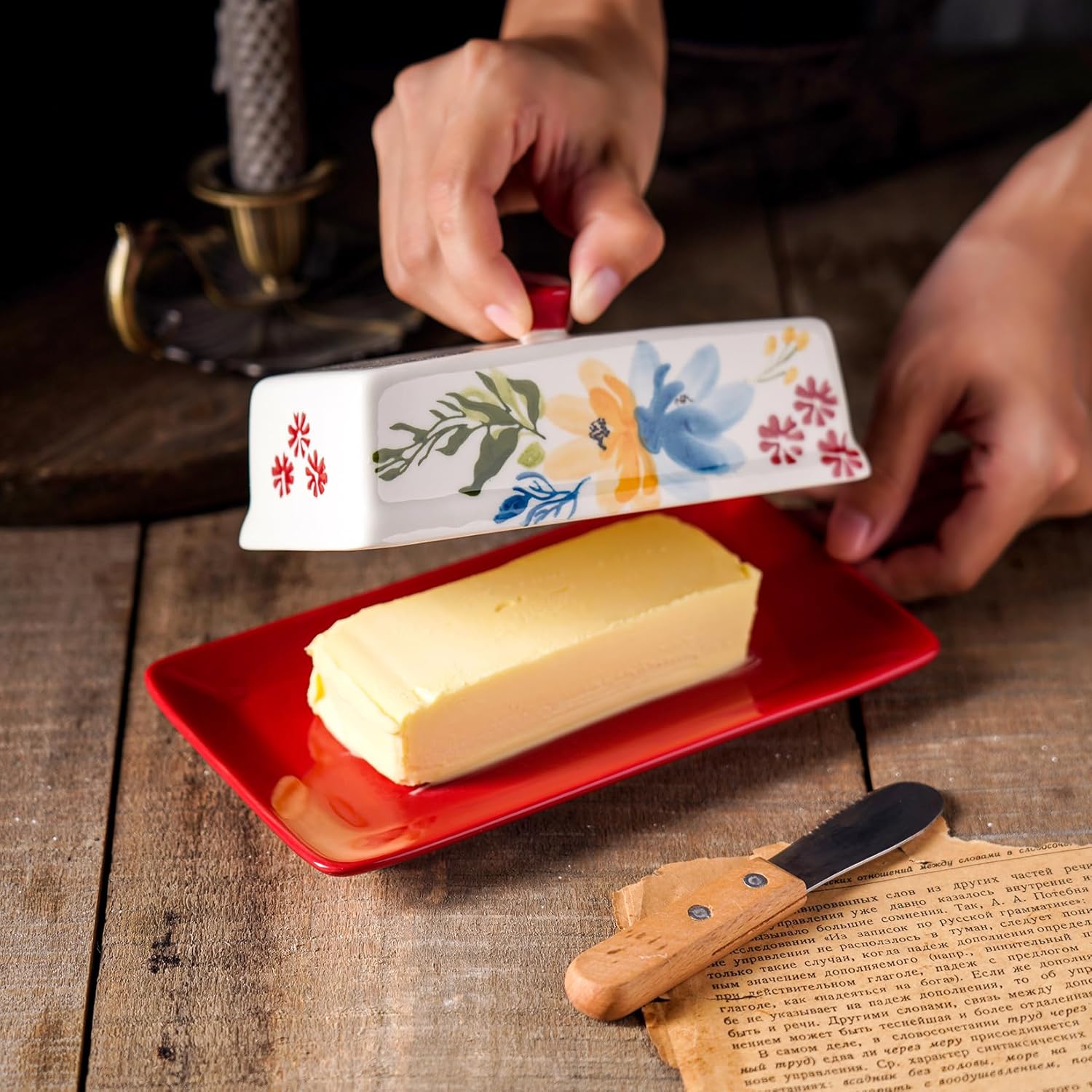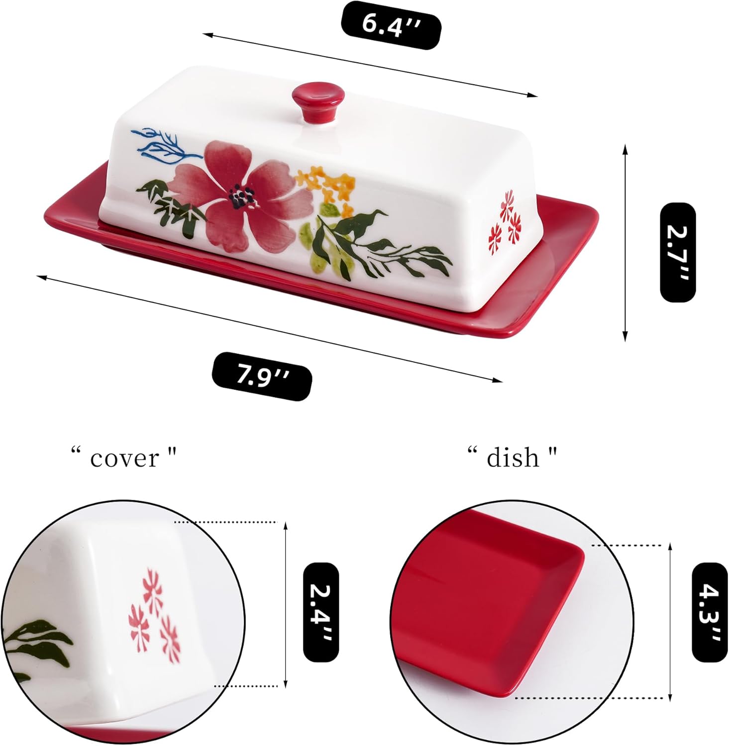 Butter Dish Ceramic Butter Keeper Butter Dish with Lid, Butter Container, RED