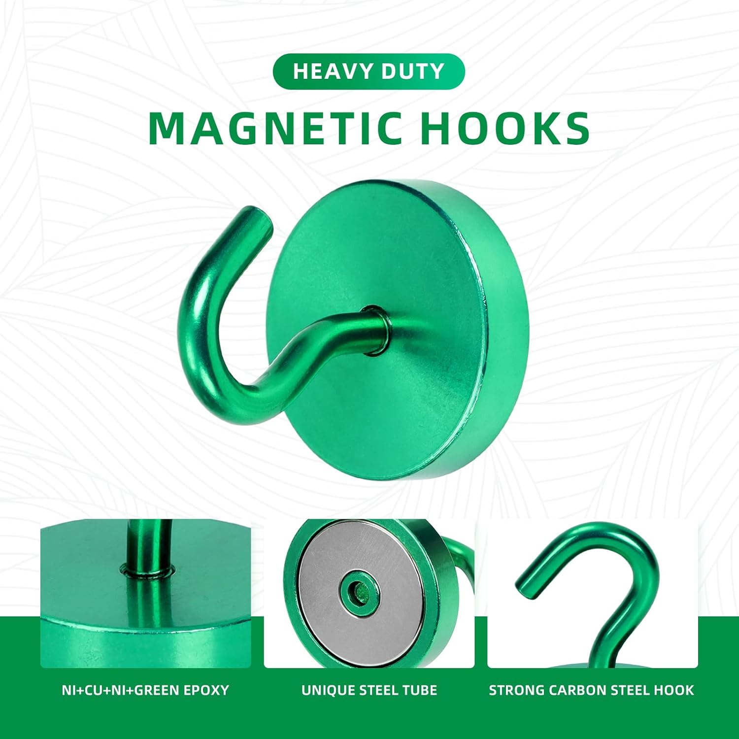 Neosmuk Magnetic Hooks, Cruise Ship Essentials, 120lb+ Heavy Duty Magnetic Hooks for Cruise Cabins, Refrigerator, Grill, Hanging, and Travel | Extra Strong Must-Haves Magnet Hook,Green, Pack of 10