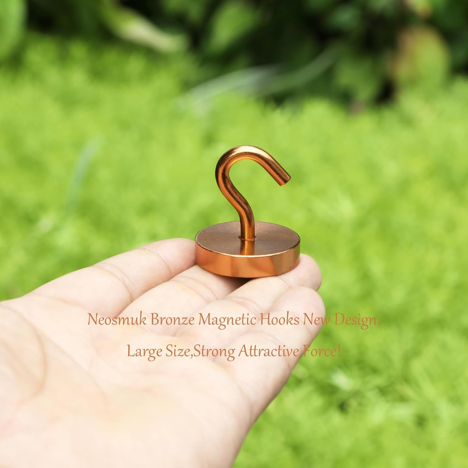 Neosmuk Magnetic Hooks, Cruise Ship Essentials, 120lb+ Heavy Duty Magnetic Hooks for Cruise Cabins, Refrigerator, Grill, Hanging, and Travel | Extra Strong Must-Haves Magnet Hook,Bronze, Pack of 10