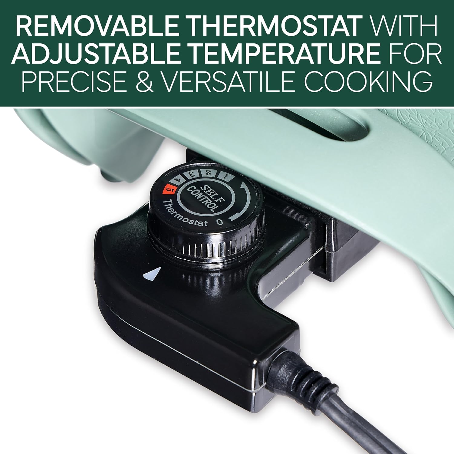 - Precise Temperature Control: Includes an on/off indicator light and a removable thermostat with variable temperature settings. Easily adjust the heat for accurate cooking control and achieve perfect results while preventing overcooking.